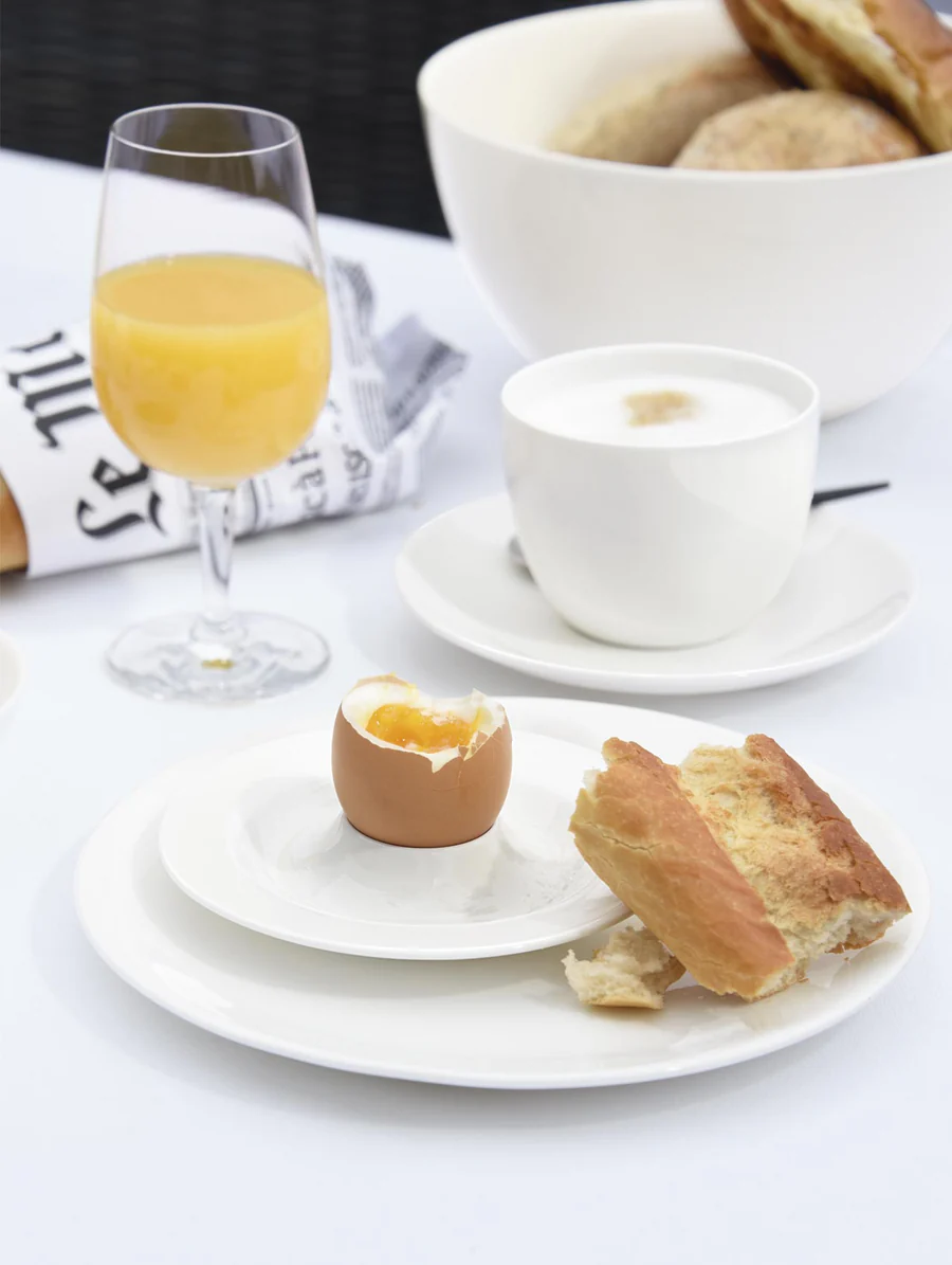 Voeg een vleugje elegantie toe aan je ontbijttafel met de ASA Selection eierdop uit de à table-serie. Gemaakt van hoogwaardig Fine Bone China met een diameter van 13 cm, combineert deze eierdop tijdloos design met praktische functionaliteit. Dankzij de handige vorm vang je moeiteloos eierschalen op, zonder extra schaaltjes nodig te hebben. Het minimalistische ontwerp en de subtiele glans maken deze eierdop een stijlvolle toevoeging aan elk servies.
