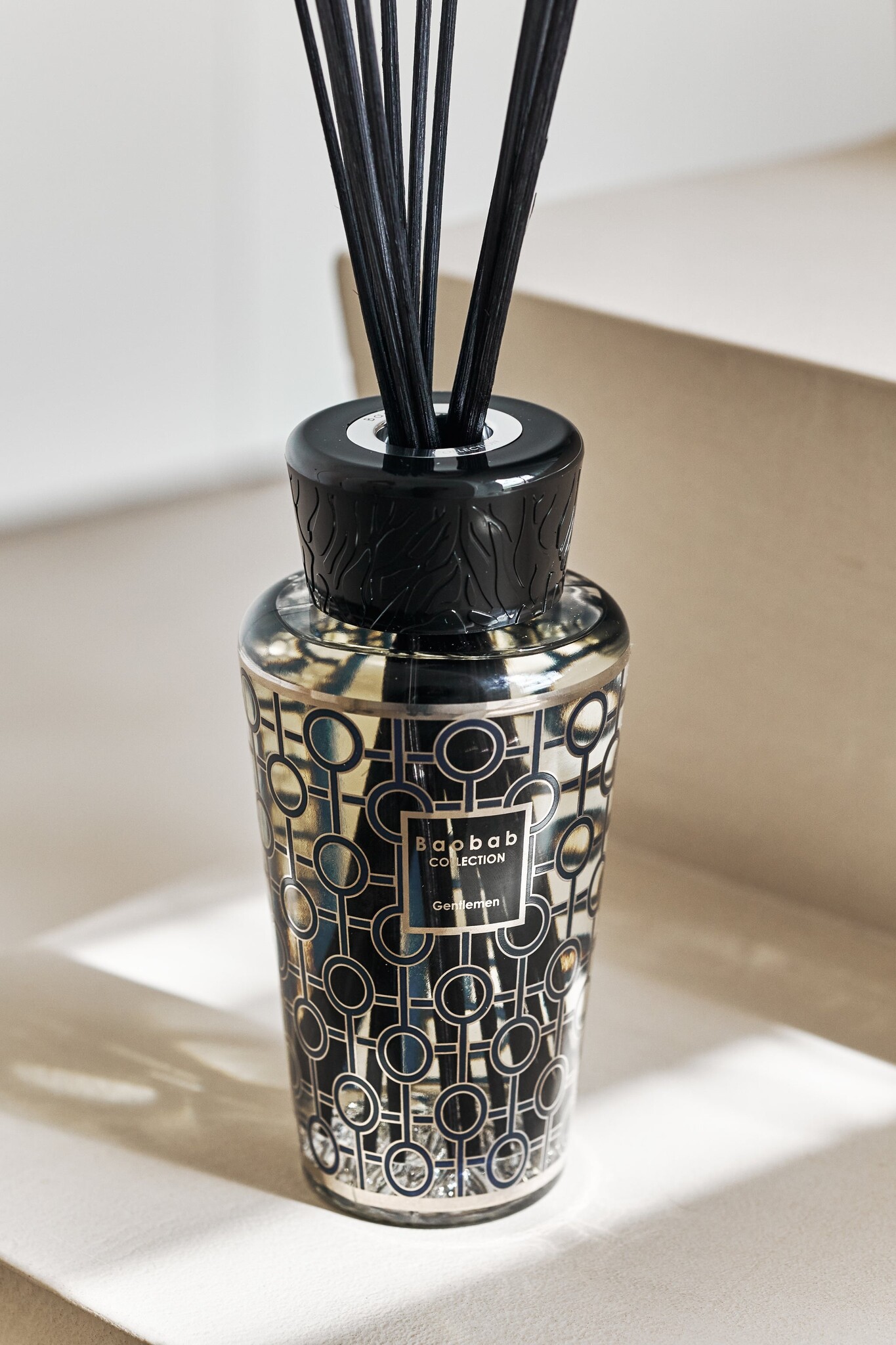 Stap in de wereld van verfijning met de Gentlemen Diffuser van Baobab Collection. Met zijn elegante platina en marineblauwe ontwerp voegt het niet alleen klasse toe aan je interieur, maar verspreidt het ook een bedwelmende geur van rum, saffraan en labdanum. Verwen je zintuigen en maak een statement van stijl.