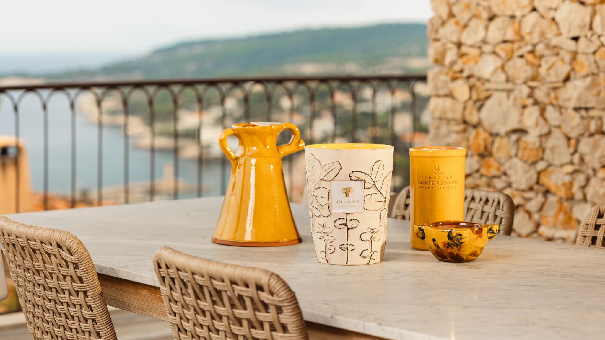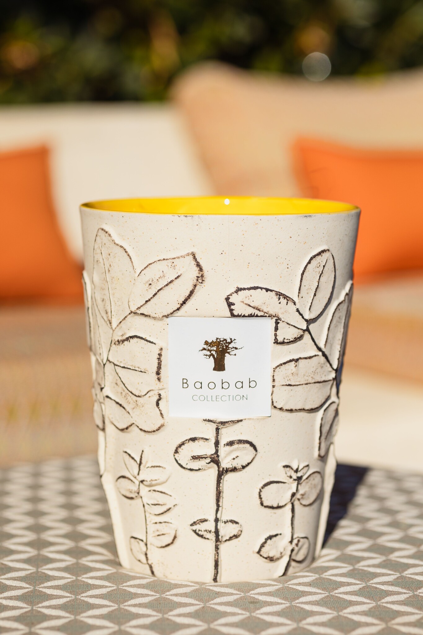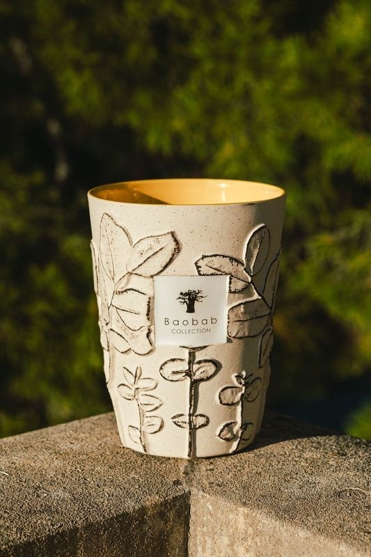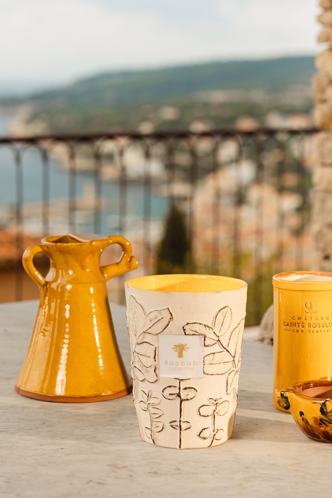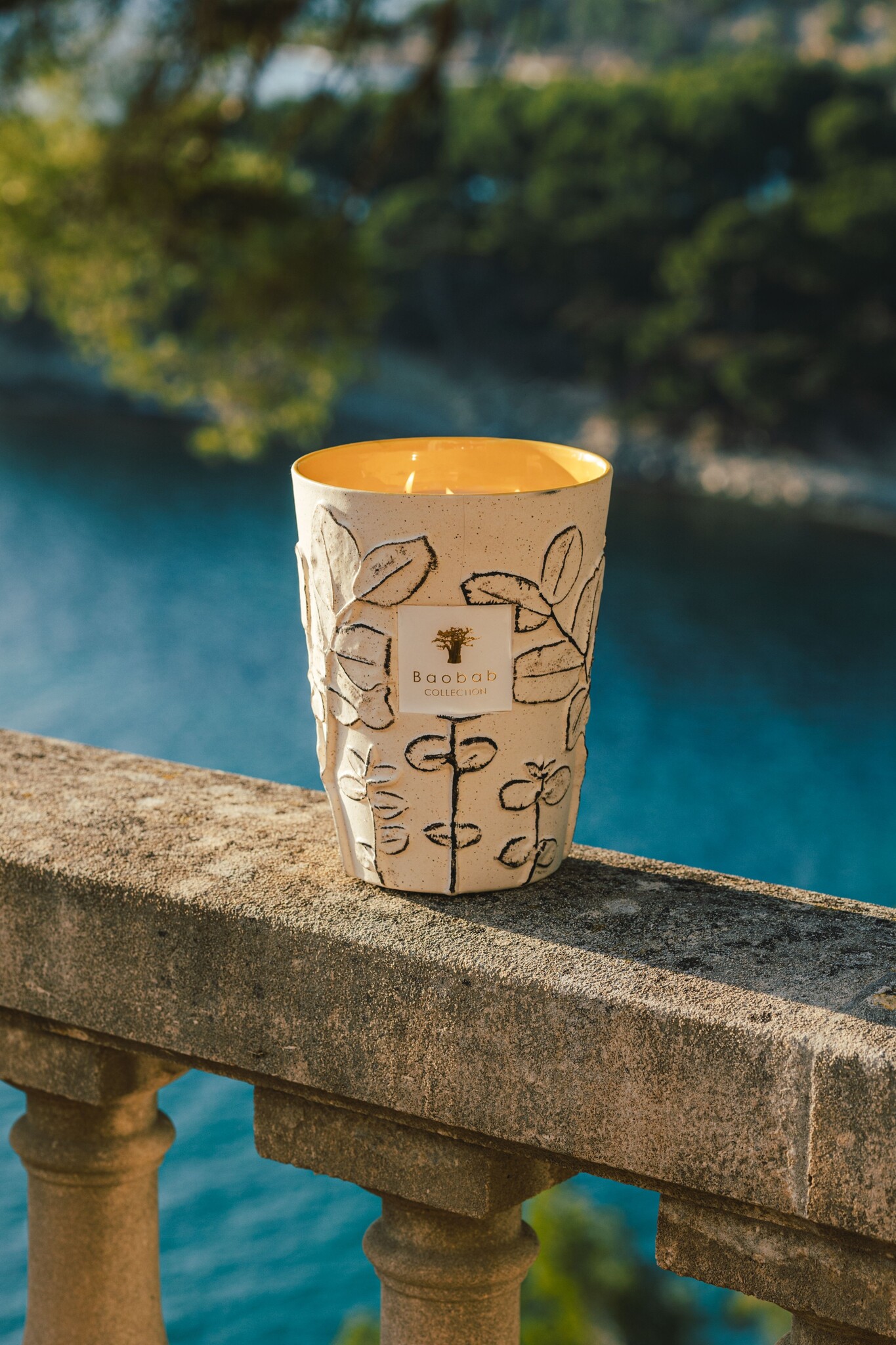 Het contrasterende effect van de glanzend gele binnenkant en de mat witte buitenkant doet denken aan de zon die de mediterrane rotsen verlicht. Deze kaars is een prachtig voorbeeld van vakmanschap: elke kaars wordt met zorg handgemaakt in Portugal, van het ontwikkelen van de mal tot het glazuren en bakken op hoge temperaturen.