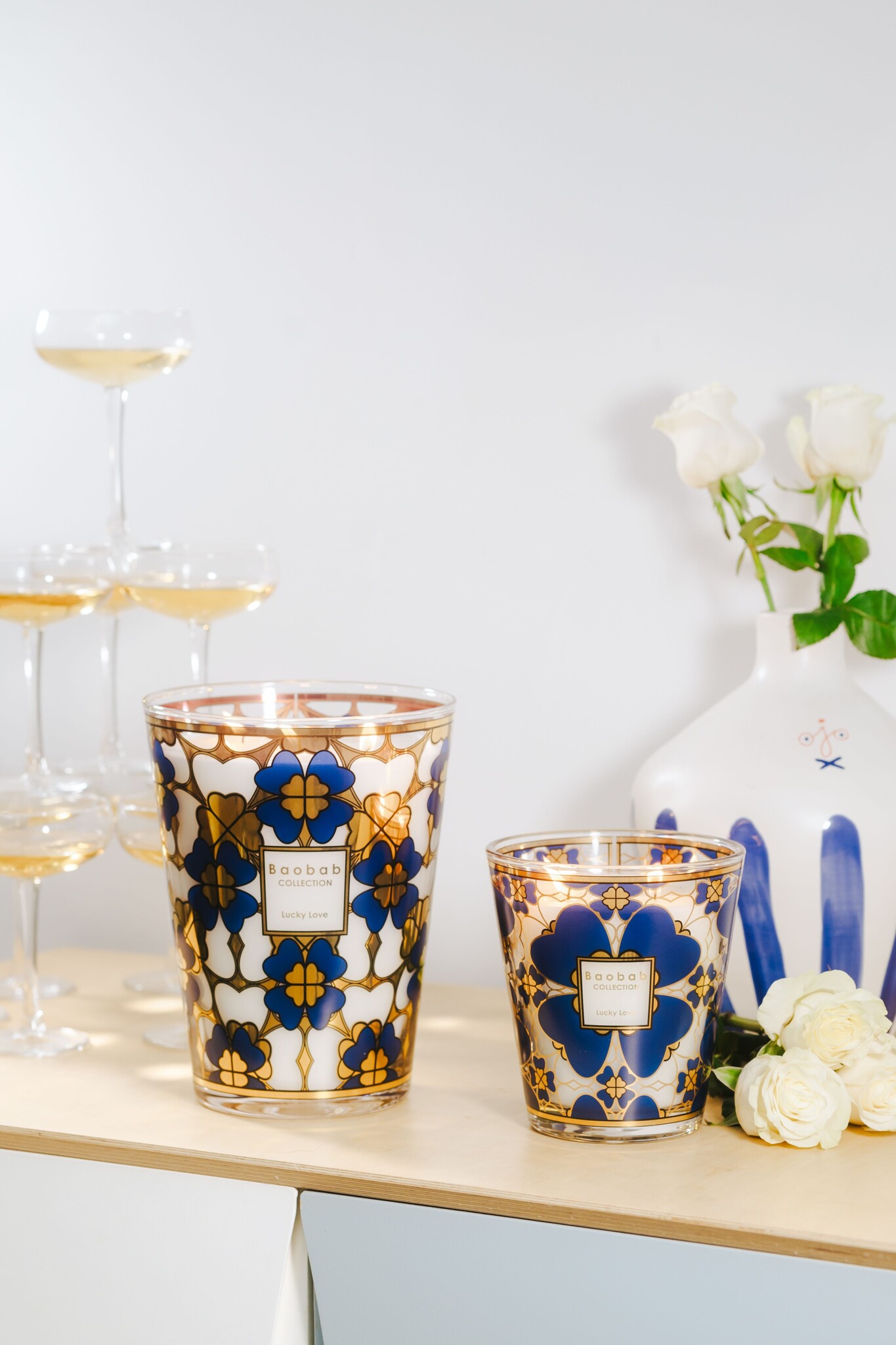 Laat je betoveren door de Limited Edition Baobab Collection Lucky Love geurkaars, een unieke creatie geïnspireerd op een vintage juweel uit de jaren ‘60. De luxueuze kaars straalt elegantie uit met een prachtige zeefdruk van 24-karaat goud en nachtblauw, waarin kleine hartjes samenkomen om een klavertje vier te vormen. Een echte geluksbrenger én stijlvolle blikvanger in je interieur.