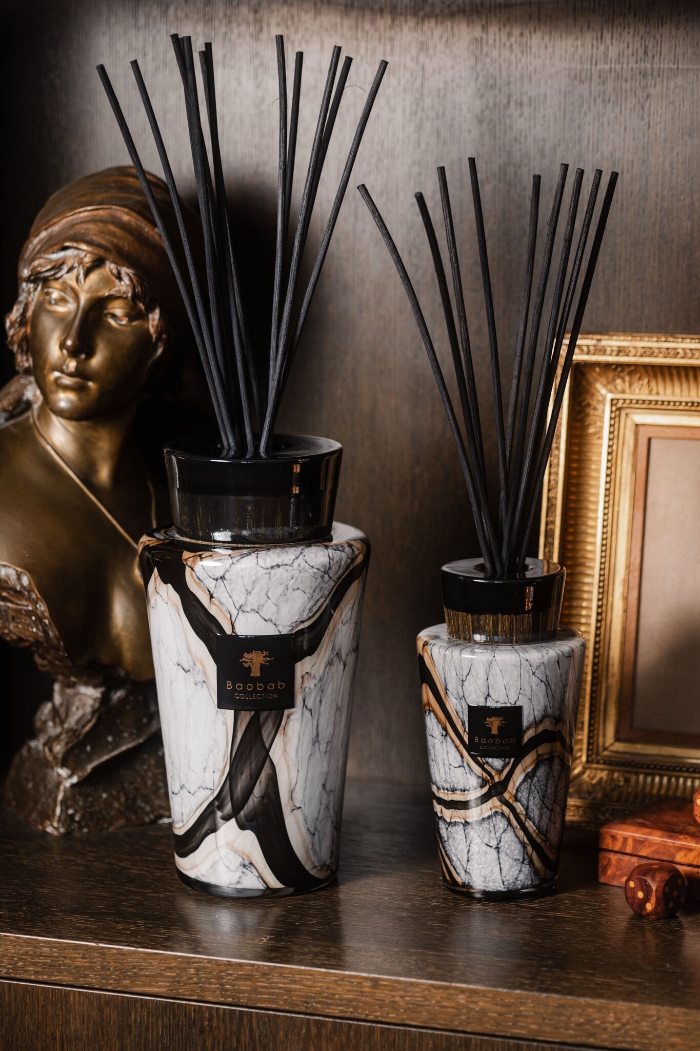 Laat je betoveren door de Baobab Collection Totem Marble-diffuser, waar vakmanschap en elegantie samenkomen. Handgeblazen glas, met de allure van weelderig marmer, krijgt vorm in de handen van onze meesterambachtslieden. De zilverzwarte keramieken dop voegt een vleugje luxe toe aan elk interieur. Compleet met geurstokjes en vulling, brengt dit decoratieve pronkstuk niet alleen een heerlijke geur, maar ook een tijdloze charme in je huis.