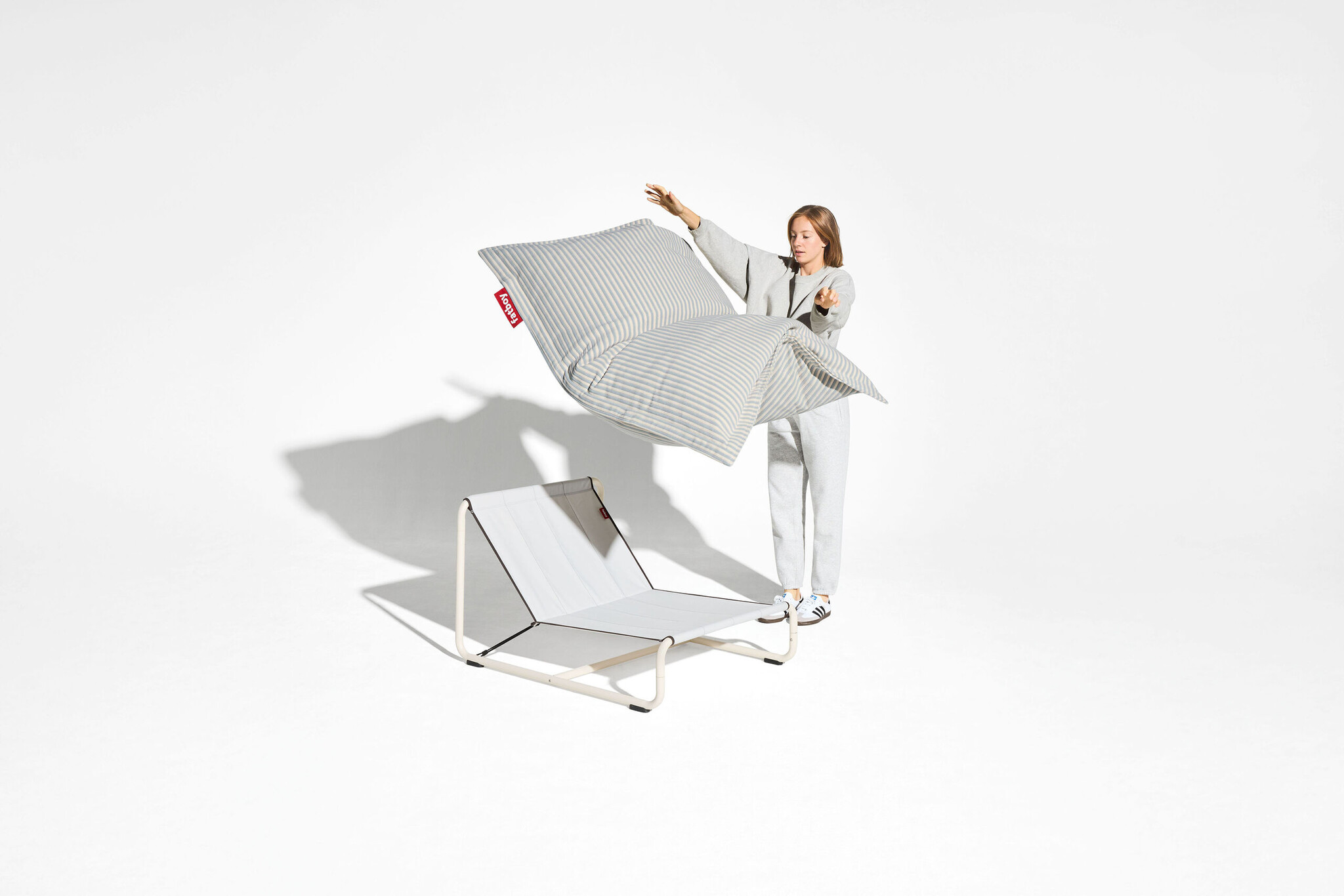 Design uitstraling met contrasterende biezen en Fatboy-label