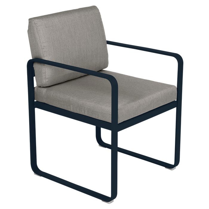 Fermob Bellevie Dining Armchair Grey Taupe Cushion – Luxe Tuinstoel
