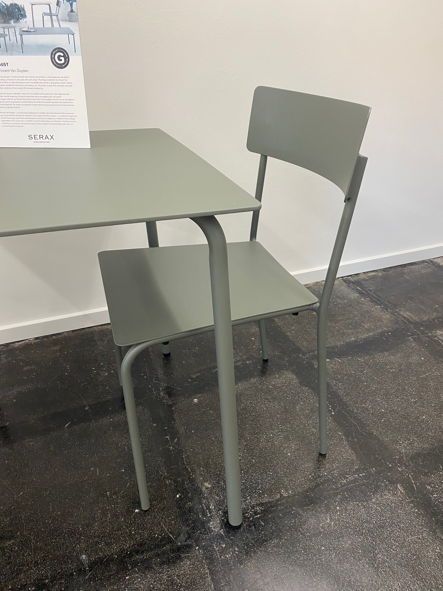 De Serax August-collectie, ontworpen door Vincent Van Duysen, staat bekend om zijn minimalistische design en tijdloze elegantie. Het strakke aluminium frame met poedercoating maakt deze bistroset niet alleen licht en onderhoudsvriendelijk, maar ook geschikt voor zowel binnen- als buitengebruik.