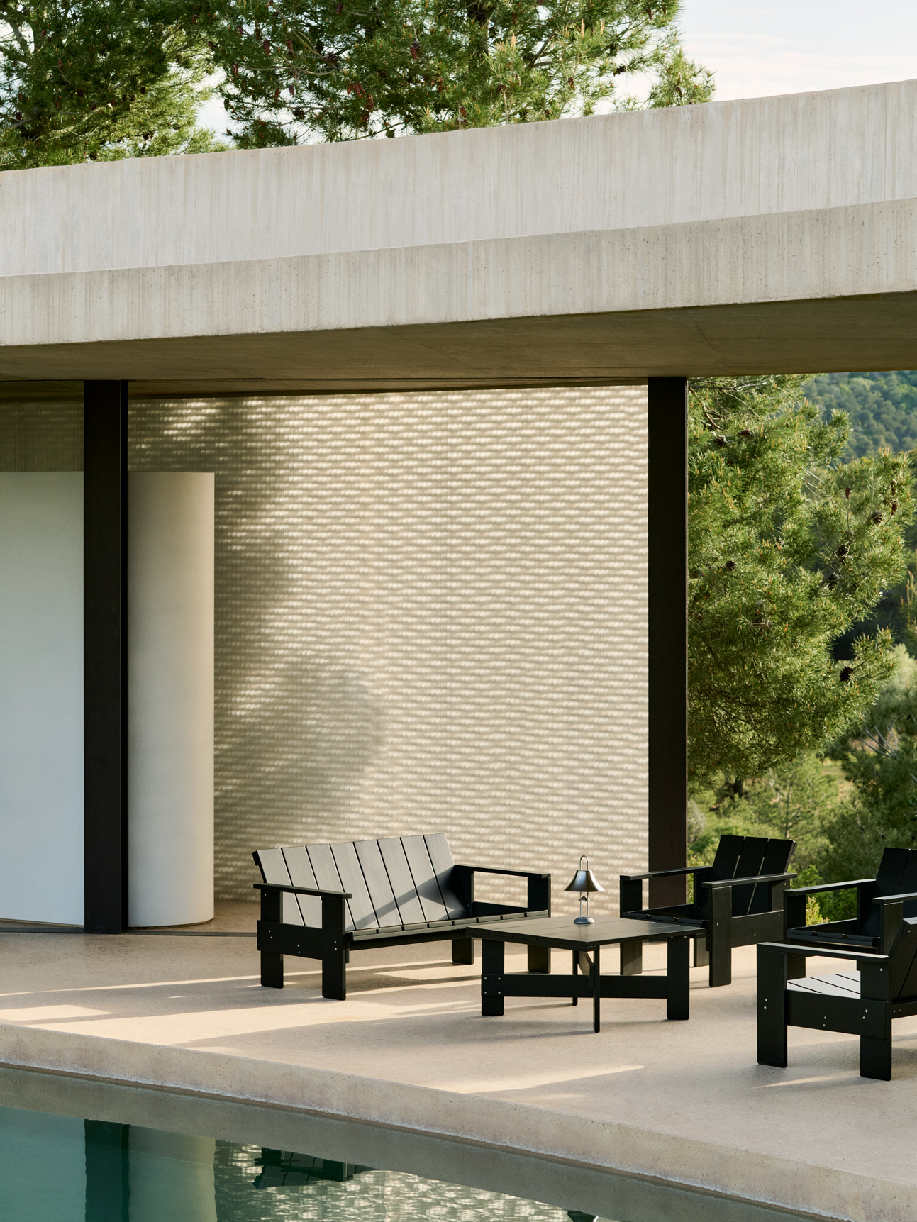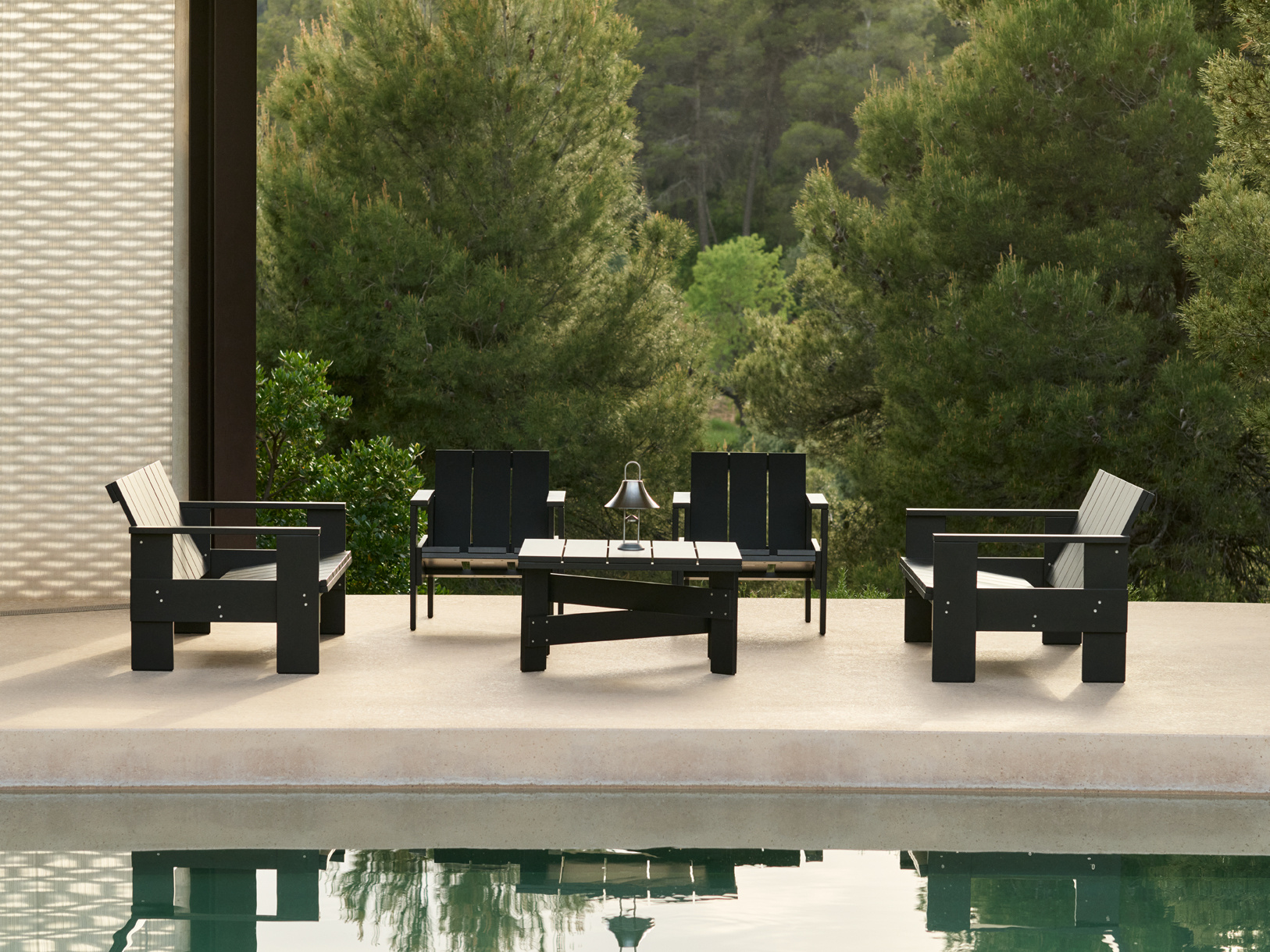 De Crate Lounge Sofa behoudt het karakteristieke ontwerp van Rietveld: strakke lijnen, transparante constructie en perfect gebalanceerde verhoudingen. Dankzij de lage zithoogte, licht hellende rugleuning en comfortabele armleuningen geniet je van een ontspannen zithouding zonder dat de bank veel ruimte inneemt. Ideaal voor je tuin, terras, veranda of balkon.
