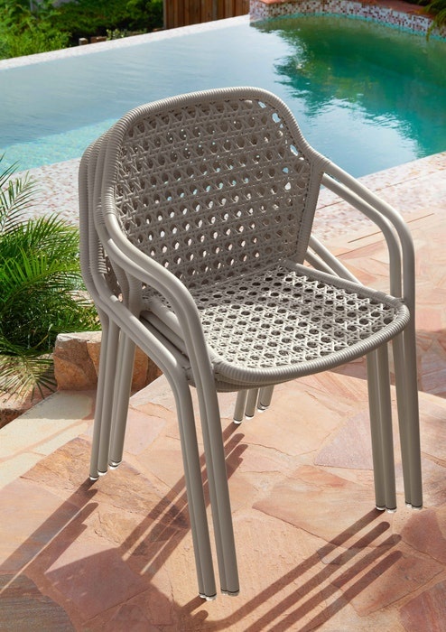 De Croisette Armchair is vervaardigd uit duurzaam aluminium met een handgeweven polyethyleen vezel, bestand tegen alle weersomstandigheden. Dankzij het lichte gewicht, de stapelbaarheid en de onderhoudsvriendelijke materialen is deze stoel zowel praktisch als esthetisch. De ergonomische armleuningen bieden optimaal zitcomfort – ideaal voor lange zomeravonden of ontspannen diners buiten.