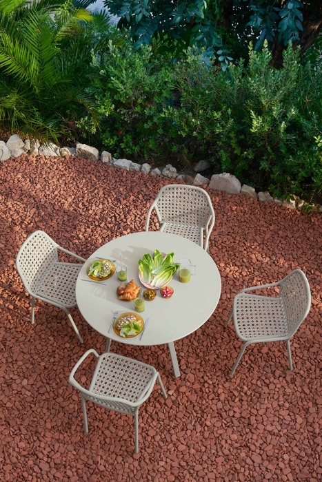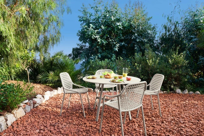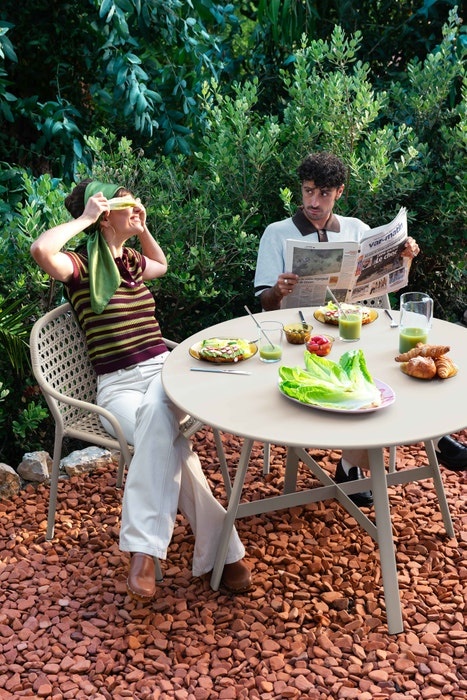 Combineer de Croisette Armchair met de bijpassende tafel of stoelen voor een harmonieuze buitenruimte vol stijl.