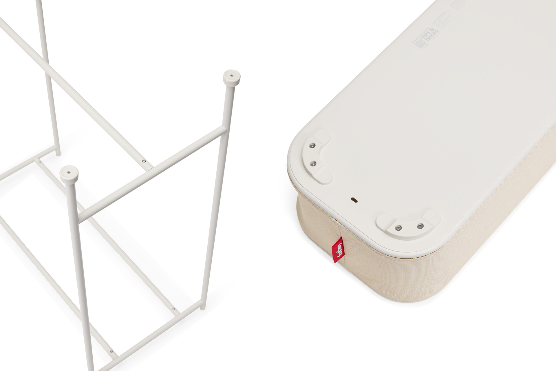 De Fatboy Adoreganizer is het ideale multifunctionele meubel dat zowel binnen als buiten perfect tot zijn recht komt. Dit slimme design combineert een stevig frame van roestvrij staal met een water- en vuilafstotende hoes van Olefin, die je eenvoudig kunt reinigen. De veelzijdige organizer is niet alleen een opbergplek, maar ook een stijlvolle bijzettafel, plantenstandaard of zelfs een minibar. Dankzij het verstelbare ontwerp kun je de opbergbak boven of onder plaatsen, en het deksel kan als tray gebruikt worden voor extra functionaliteit.