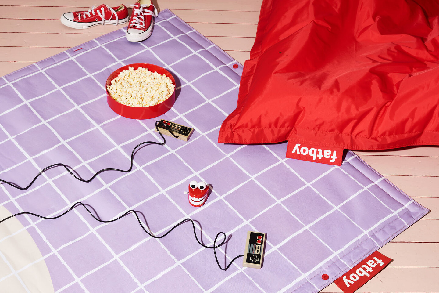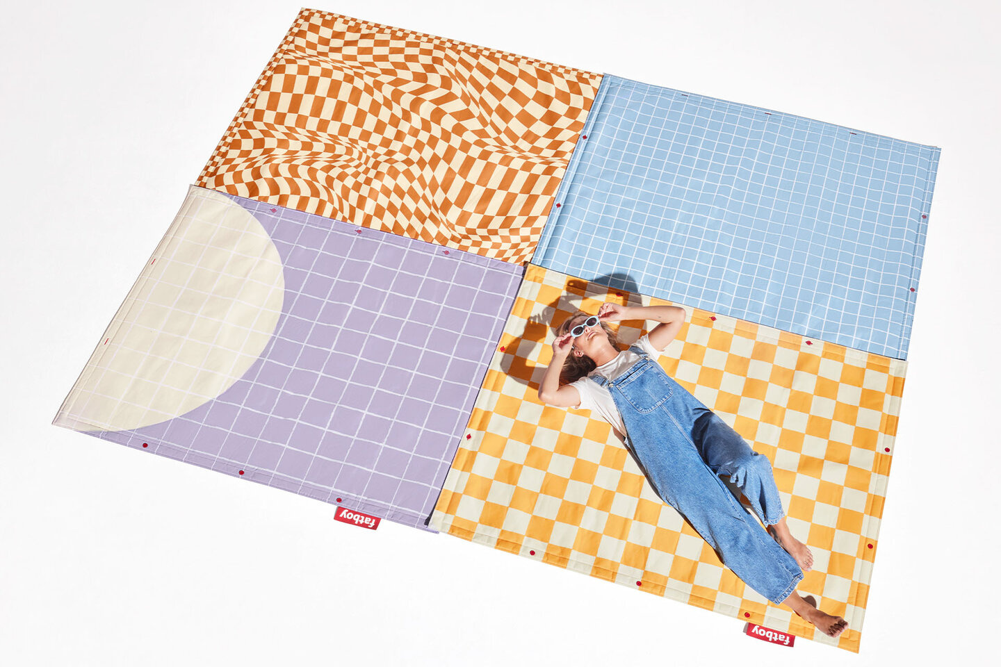 Met zijn speelse prints, zoals de kleurrijke Psych-O-print of het speelse Playground-kleed, maak je echt een statement. Of je het nu binnen of buiten wilt gebruiken, het Flying Carpet biedt voor elke setting een perfecte oplossing. Bovendien kun je dankzij het modulaire ontwerp meerdere kleden aan elkaar koppelen om de exacte afmetingen te creëren die jij wilt – ideaal voor grotere terrassen of woonkamers. De bijgeleverde rubberen Fatboy-knopen helpen om meerdere Flying Carpets gemakkelijk te verbinden.