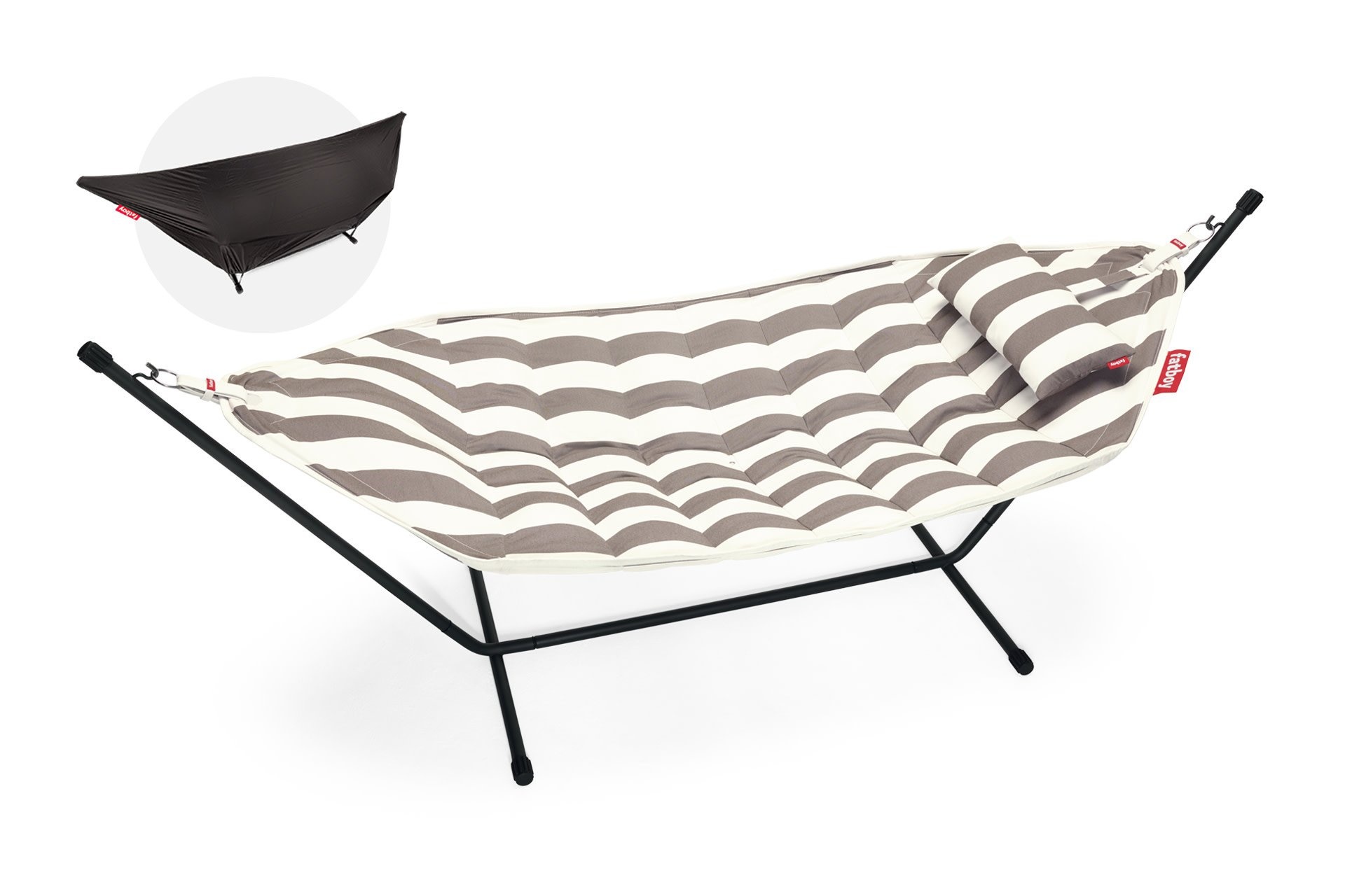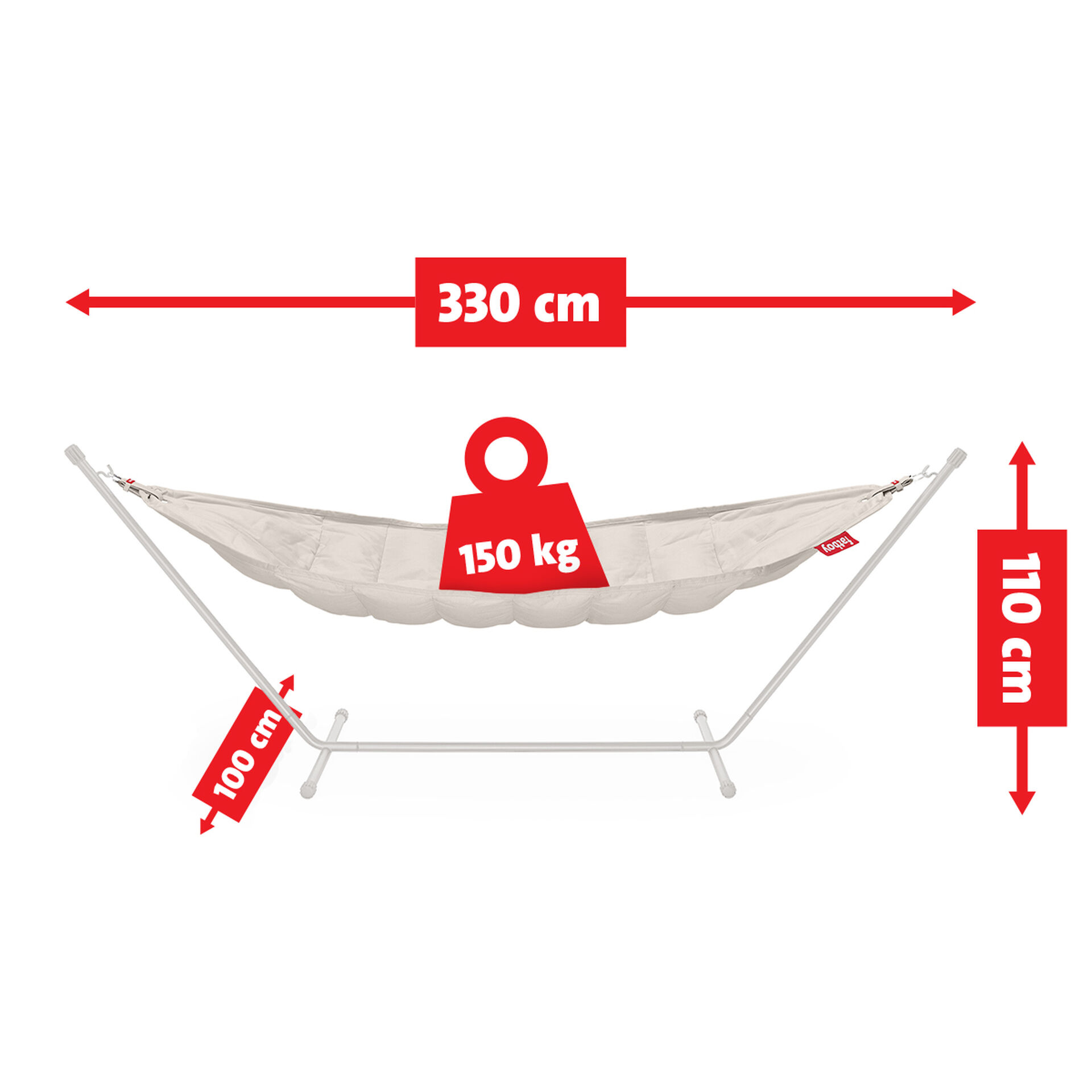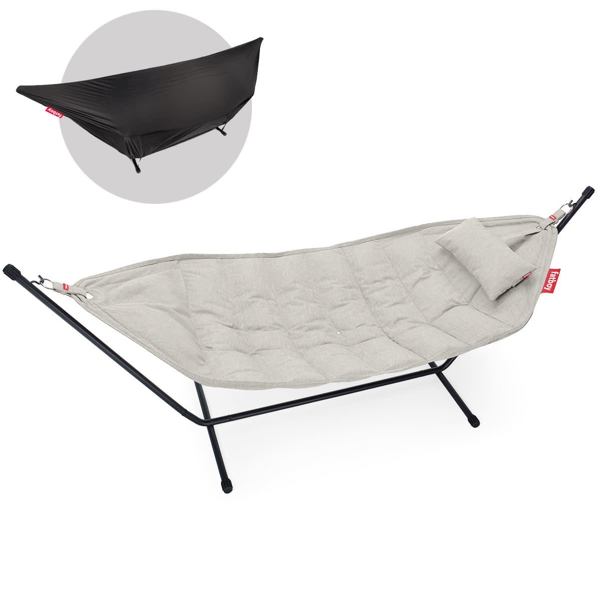 Ontdek ultieme ontspanning met de Fatboy Headdemock Superb + Pillow — de luxe hangmat die jouw tuin, balkon of terras verandert in een stijlvolle loungeplek! Dankzij het stevige metalen frame heb je geen bomen of muren nodig, jij bepaalt waar je geniet.