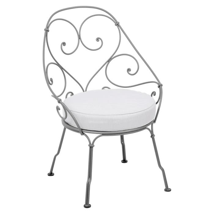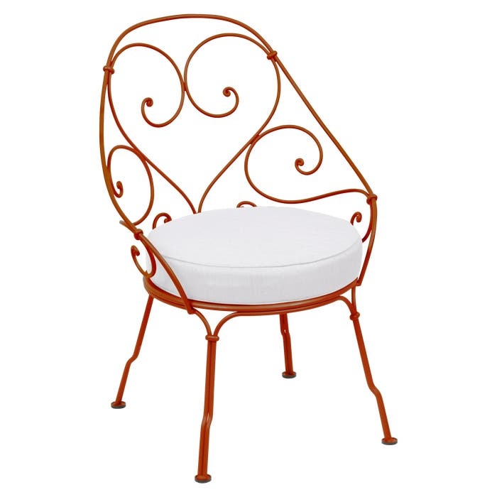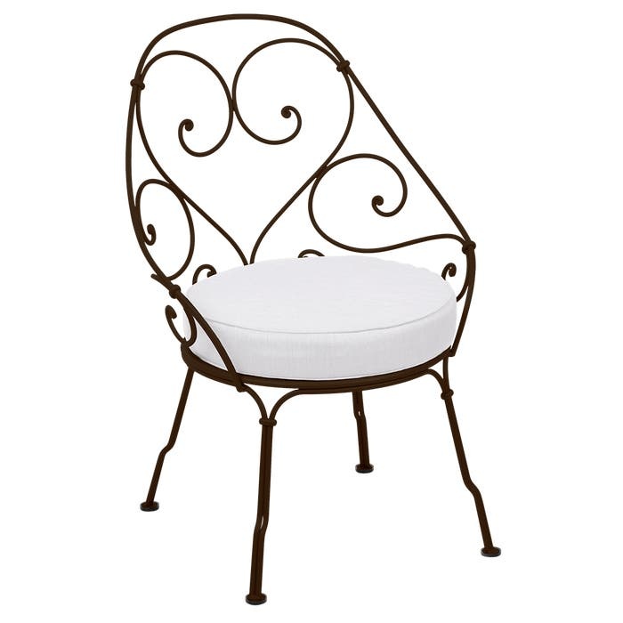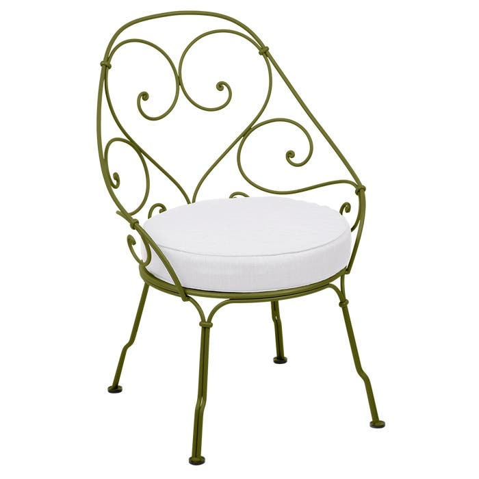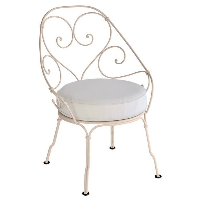 Laat je betoveren door de elegante charme van de Fermob 1900 Cabriolet Armchair met Off-White kussen, verkrijgbaar bij GRAUS wonen. Deze stijlvolle buitenfauteuil brengt de romantiek van de Belle Époque naar je tuin, terras of balkon. De ambachtelijk gesmede krullen – elk met 64 hamerslagen gevormd – geven de stoel een unieke, klassieke uitstraling.
