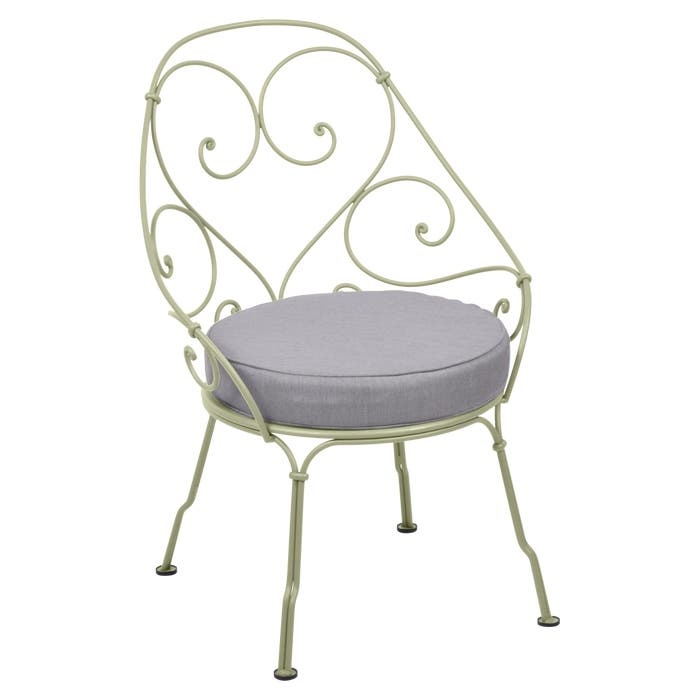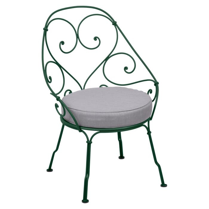 Deze stoel past perfect bij een lage tafel uit dezelfde Fermob 1900-serie en is verkrijgbaar in verschillende framekleuren die je kunt combineren met jouw favoriete kussenkleur.