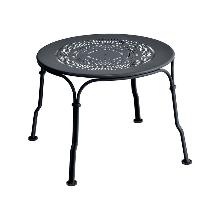 Ontdek de Fermob 1900 Low Table – een stijlvolle, lage metalen tuintafel met een romantisch Frans design, geïnspireerd op de Belle Époque. Met zijn hoogte van 34 cm is deze ronde bijzettafel perfect als salontafel voor buiten, voetenbankje of compacte lounge tafel op je balkon, terras of in je tuin. De verfijnde perforaties en handgesmede ringen geven deze tafel een authentieke, ambachtelijke uitstraling die direct charme toevoegt aan elke buitenruimte.