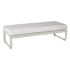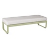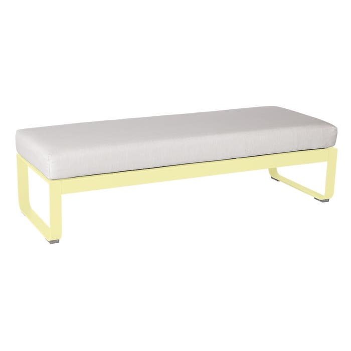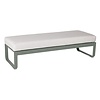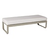Voeg een vleugje luxe en veelzijdigheid toe aan je buiten- of binnenruimte met de Fermob Bellevie 2-Zits Ottoman – Off-White Cushion. Dit stijlvolle meubelstuk is ontworpen door de gerenommeerde studio Pagnon & Pelhaître en is een perfecte aanvulling op je lounge- of eetgedeelte. De ottoman heeft geen rugleuning, waardoor het een uniek ontwerp binnen de Bellevie-collectie is. Dankzij de veelzijdigheid van dit meubel kun je het op verschillende manieren gebruiken: als voetenbank naast de Bellevie 2-zits bank of als onderdeel van een gecoördineerde loungeset met een fauteuil of bank uit dezelfde collectie.