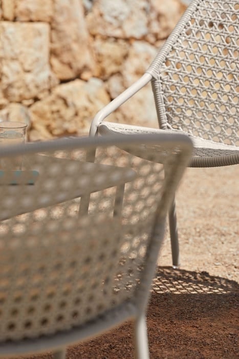 De gevlochten rugleuning en zitting zijn gemaakt van duurzame polyethyleenvezels. Dit materiaal is speciaal ontworpen voor langdurig buitengebruik. Het is UV-bestendig, bestand tegen regen en eenvoudig schoon te maken. Zo blijft de stoel er seizoen na seizoen prachtig uitzien.