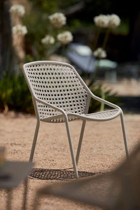 De Croisette Armchair is vervaardigd met een lichtgewicht aluminium frame, wat niet alleen zorgt voor een strakke, moderne uitstraling maar ook voor ultiem gebruiksgemak. Het frame is behandeld met een hoogwaardige anti-corrosiebehandeling, waardoor de stoel bestand is tegen diverse weersomstandigheden en jarenlang meegaat.