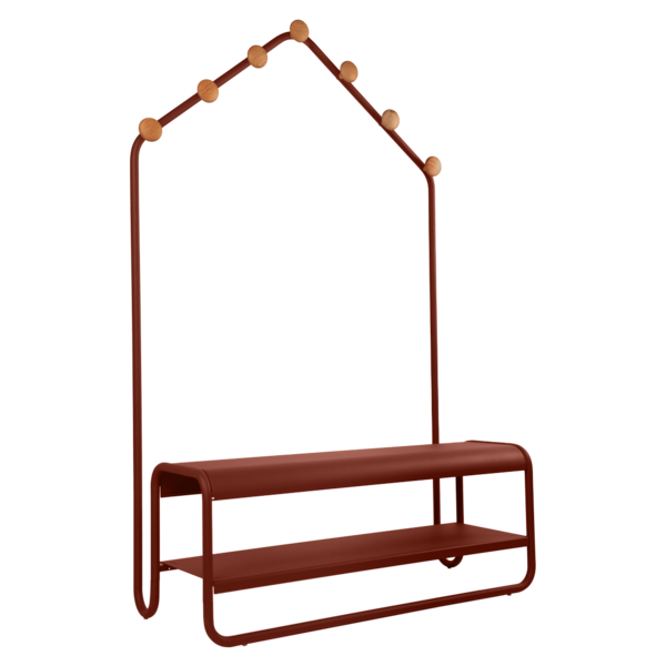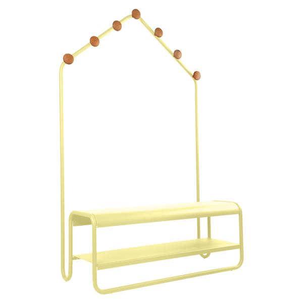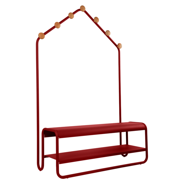Haal speelse elegantie in huis met de Fermob Funambule Cloakroom Bench, een unieke combinatie van stijl en functionaliteit. Deze 3-in-1 meubelstuk fungeert als welkomsbankje, opbergrek en kapstok met 7 houten haken op verschillende hoogtes. Perfect voor elke entree, groot of klein!