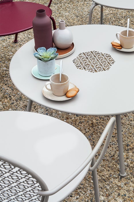 Wil je jouw terras, tuin of woonkamer een elegante en unieke uitstraling geven? De Fermob Lorette Low Table Ø80 cm is precies wat je zoekt. Met zijn verfijnde ronde vorm en opvallende geperforeerde staalplaattafelblad voegt deze design bijzettafel een vleugje luxe toe aan elke ruimte. Of je hem nu binnen of buiten plaatst, het “wow-effect” blijft.