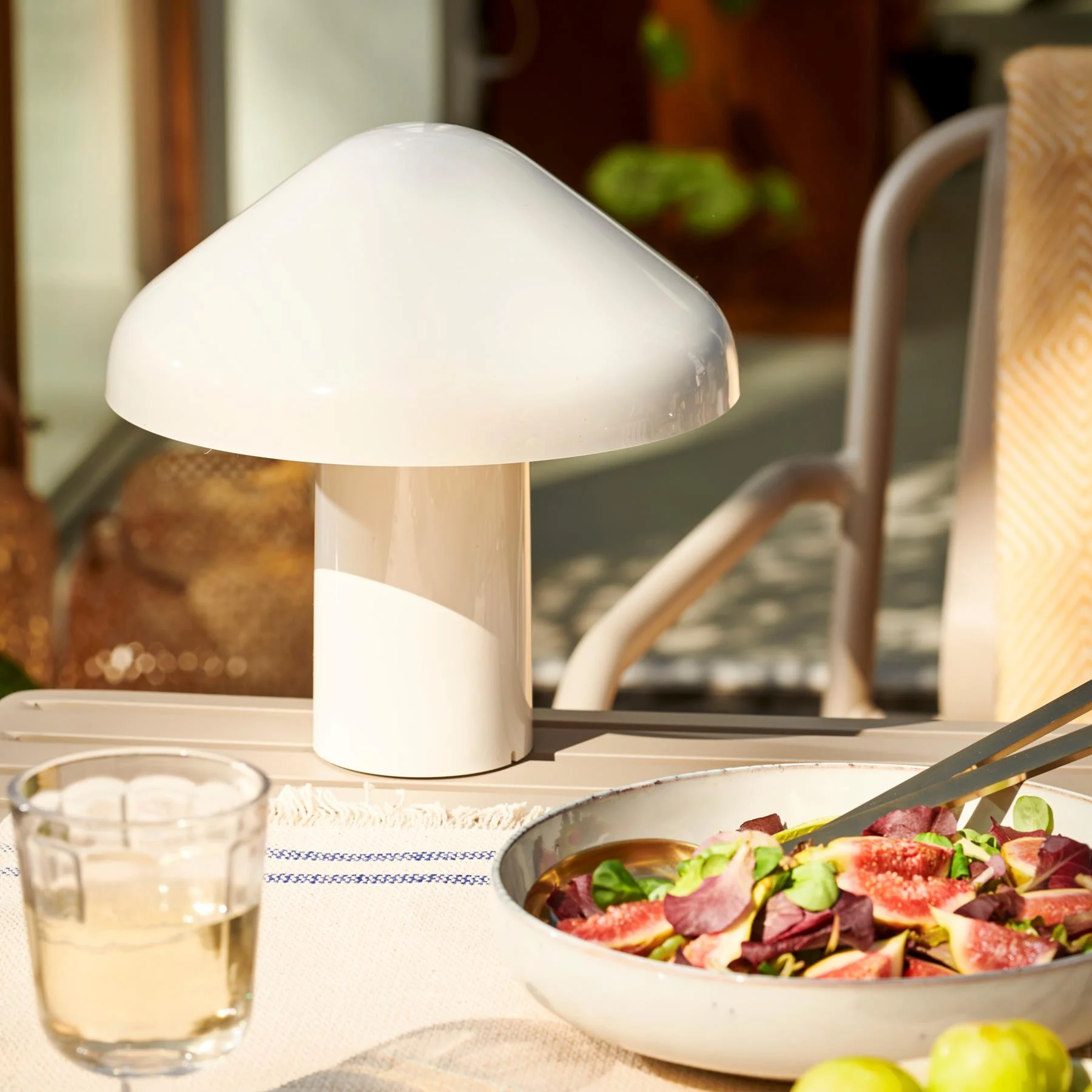 Breng sfeer in je interieur én tuin met de HAY Pao Portable Tafellamp, een stijlvol ontwerp van de Japanse designer Naoto Fukasawa. Deze unieke lamp is geïnspireerd op de zachte, ronde vormen van traditionele Mongoolse Pao-tenten. Dankzij het minimalistische design past de lamp moeiteloos in elk interieur en straalt hij rust en harmonie uit.