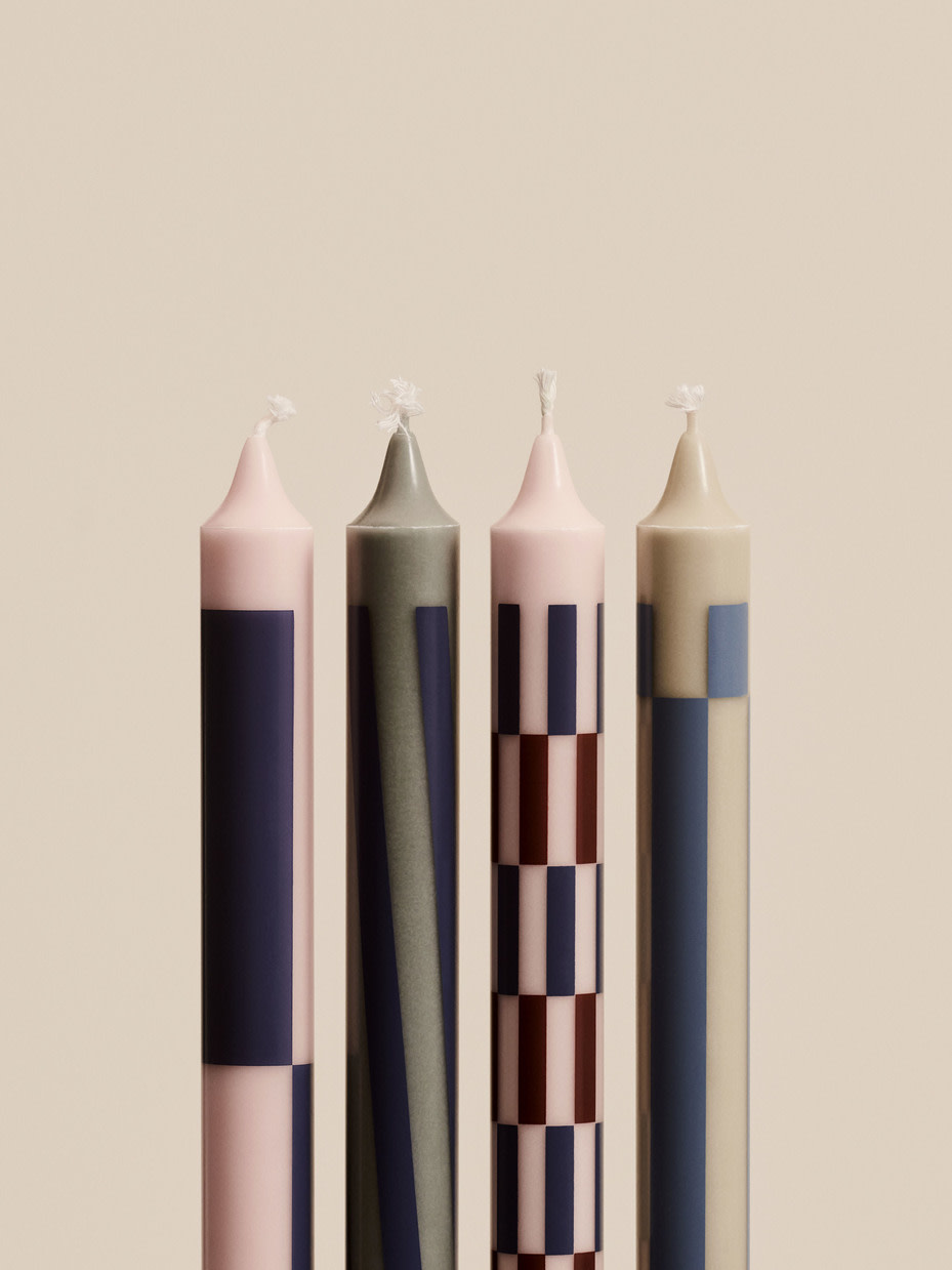 Ontdek de unieke HAY Pattern Kaarsen Set van 4, een kleurrijke en moderne toevoeging aan jouw interieur! Met een assortiment aan grafische ontwerpen in verschillende patronen en kleuren, geven deze kaarsen een frisse en eigentijdse uitstraling aan elke ruimte. Perfect voor op de eettafel, de salontafel of als sfeervolle decoratie op de vensterbank.