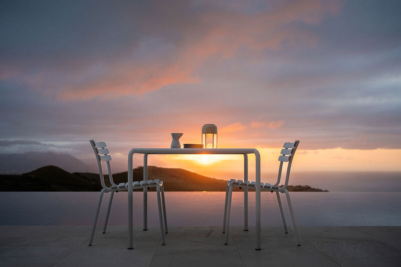 - Binnen én buiten: Dankzij hoogwaardige materialen is deze tafel geschikt voor binnenruimtes en overdekte buitenruimtes.