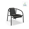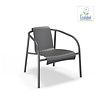 Deze loungestoel is vervaardigd uit 97% gerecycled plastic, gecombineerd met een stevig gepoedercoat stalen frame. Dit maakt de stoel niet alleen milieuvriendelijk, maar ook weerbestendig en onderhoudsarm. De gebruikte materialen zijn bestand tegen regen, zon en vuil, waardoor de stoel lang meegaat zonder kleur te verliezen.