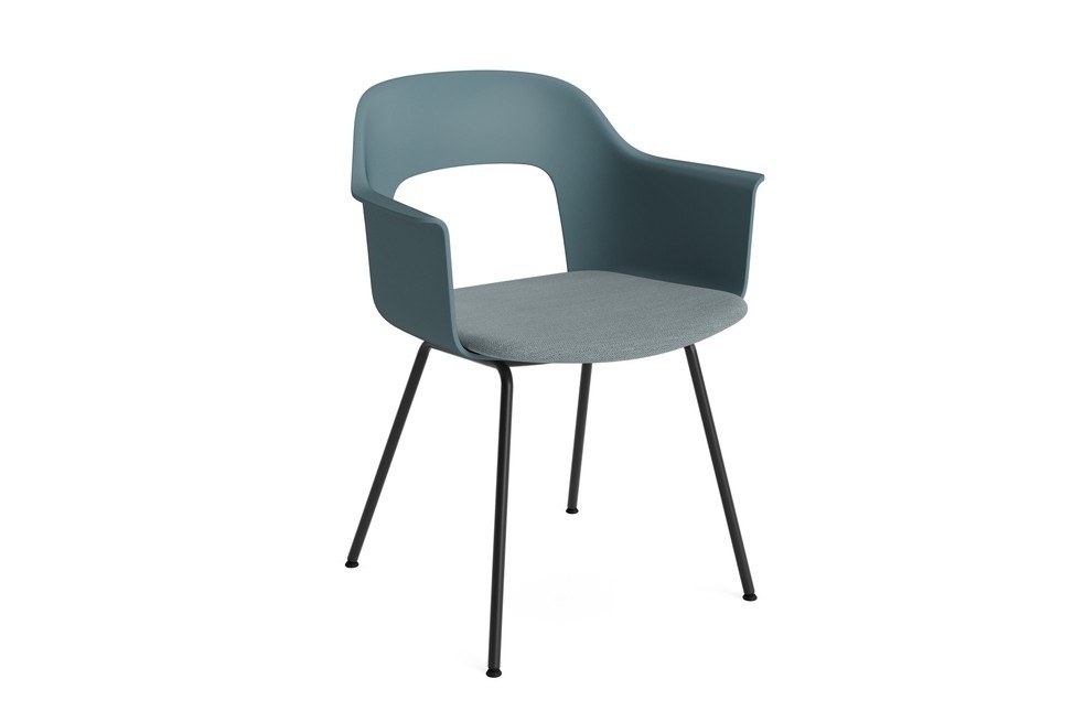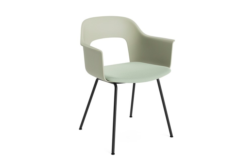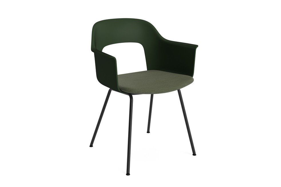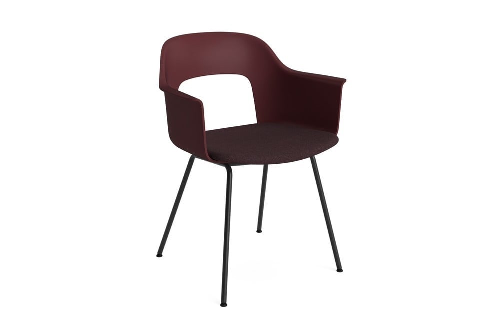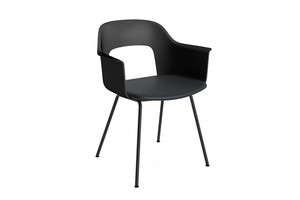 De kuip is vervaardigd uit minimaal 96% post-consumer gerecycled plastic, waarmee HAY duurzaamheid en circulariteit in design naar een hoger niveau tilt. De stoel is beschikbaar in diverse kleuren en stofferingen, met keuze uit stoffen en olijfblad-gegerfd leer. Het frame wordt geleverd in zwart gepoedercoat staal of een chroomafwerking, zodat je de perfecte combinatie vindt voor jouw interieur.
