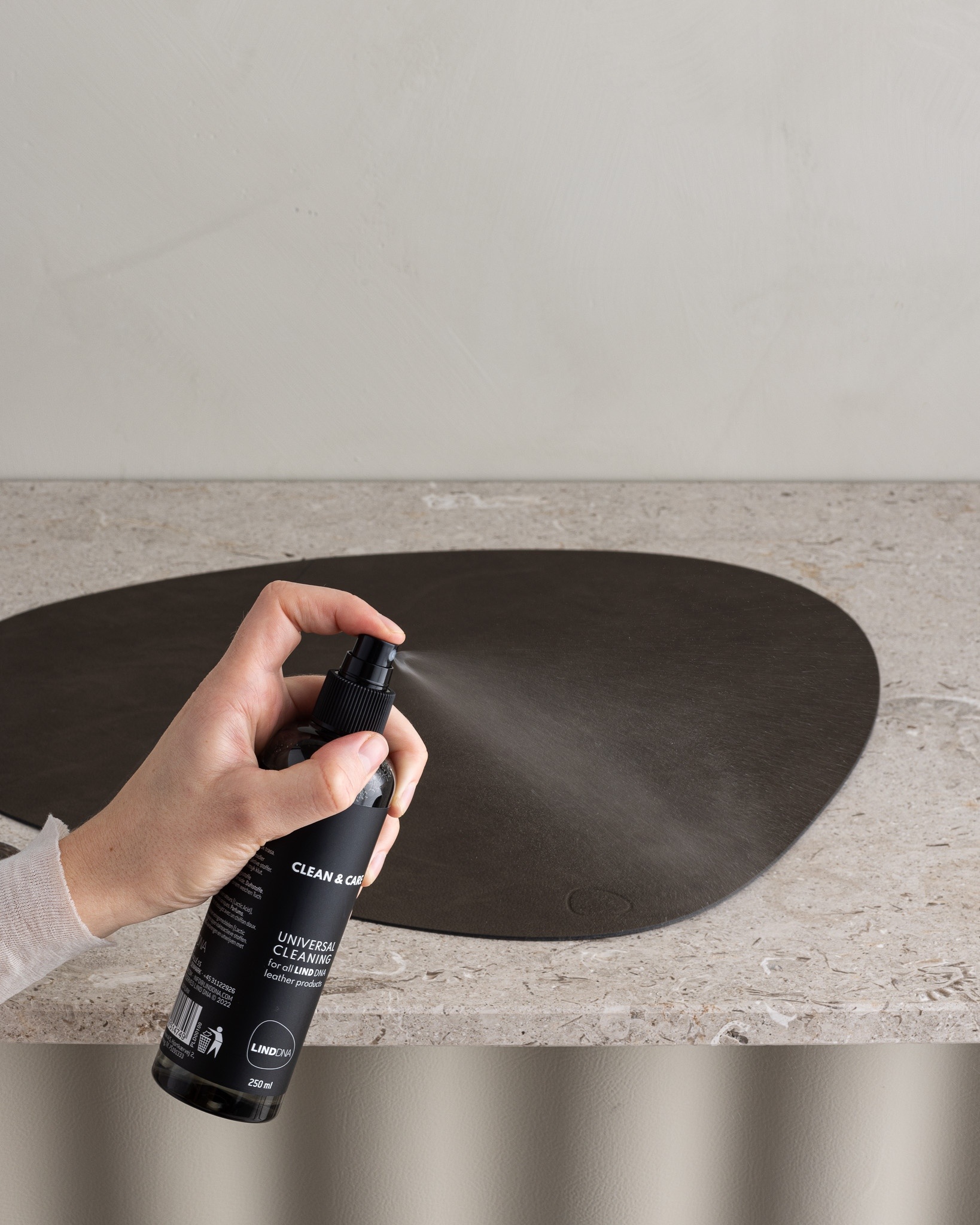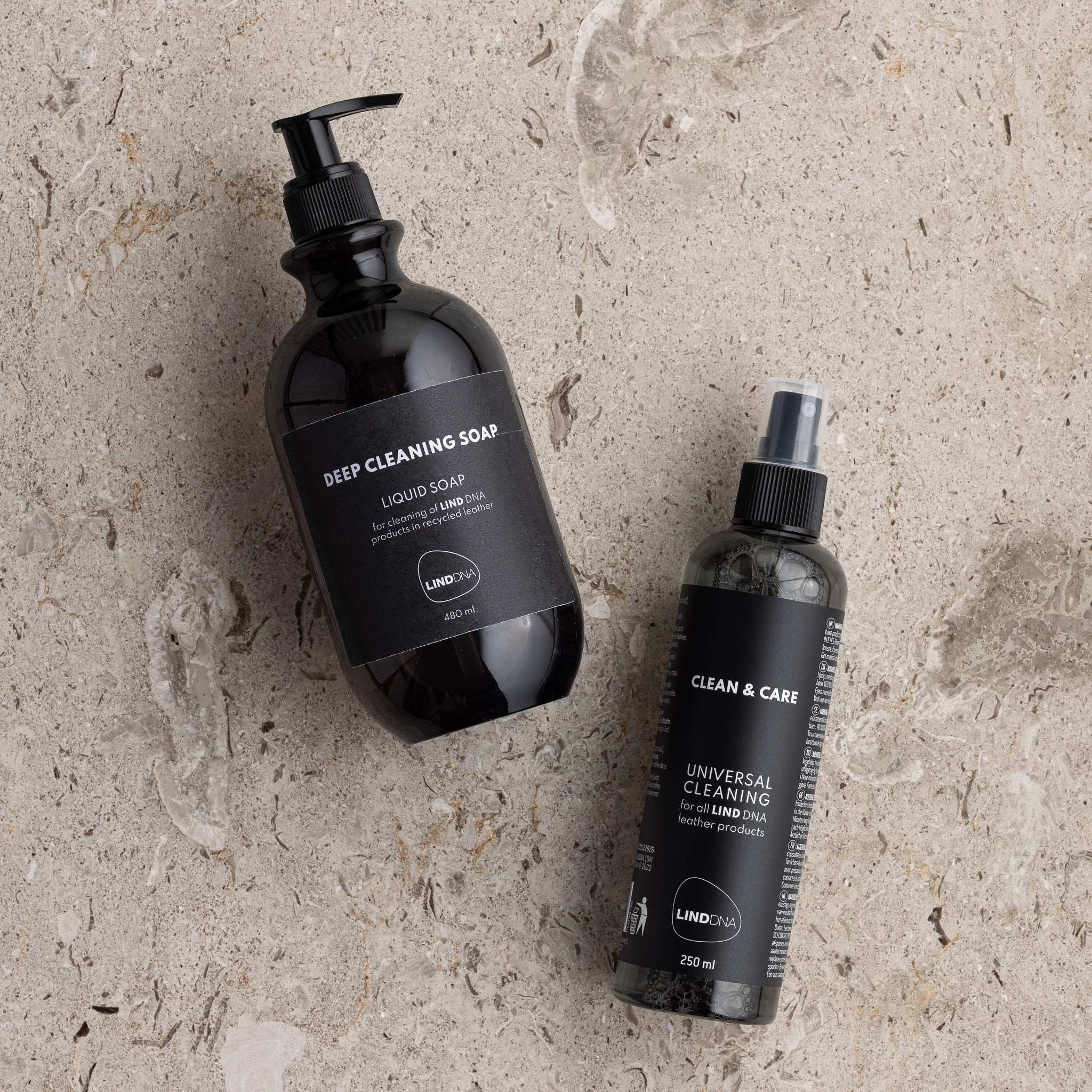 Geef je LIND DNA producten van gerecycled leer de zorg die ze verdienen met de Clean & Care reinigingsspray, exclusief bij GRAUS wonen. Deze hoogwaardige spray is speciaal ontwikkeld om de afwerking van je gerecycleerde leren producten te herstellen en te verfrissen. De spray verwijdert effectief vuil en vlekken, terwijl het een aangename geur achterlaat.