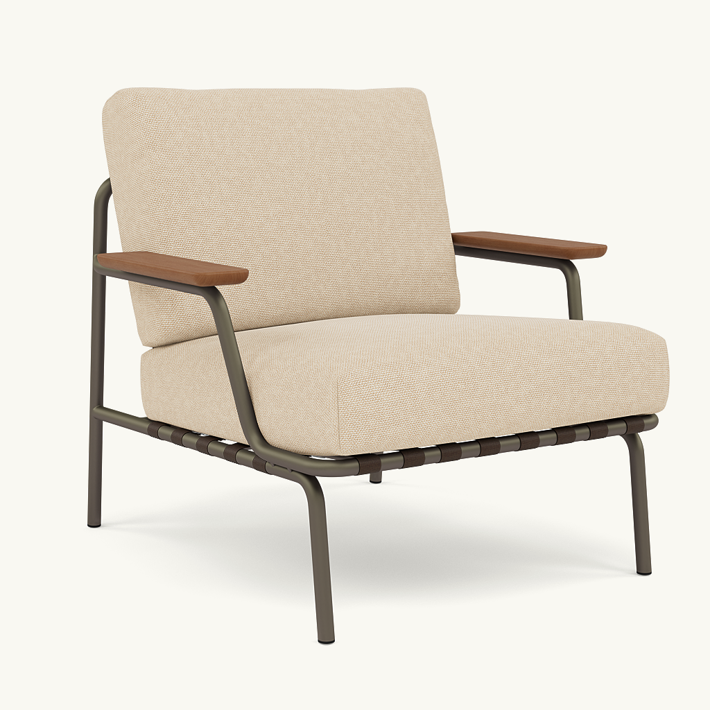 De Muuto Settle Outdoor Lounge Chair is de perfecte toevoeging voor buitenliefhebbers die willen genieten van optimaal comfort en stijl. Deze unieke loungestoel nodigt uit om heerlijk te ontspannen in de frisse lucht. Het ontwerp combineert een luchtig, gepoedercoat stalen frame met FSC™-gecertificeerde sapele mahoniehouten armleuningen, wat zorgt voor een warme en uitnodigende uitstraling. Dankzij de hoogwaardige materialen en afwerking is deze stoel bestand tegen alle weersomstandigheden, terwijl de ergonomische vorm en dikke kussens ultiem zitcomfort bieden.