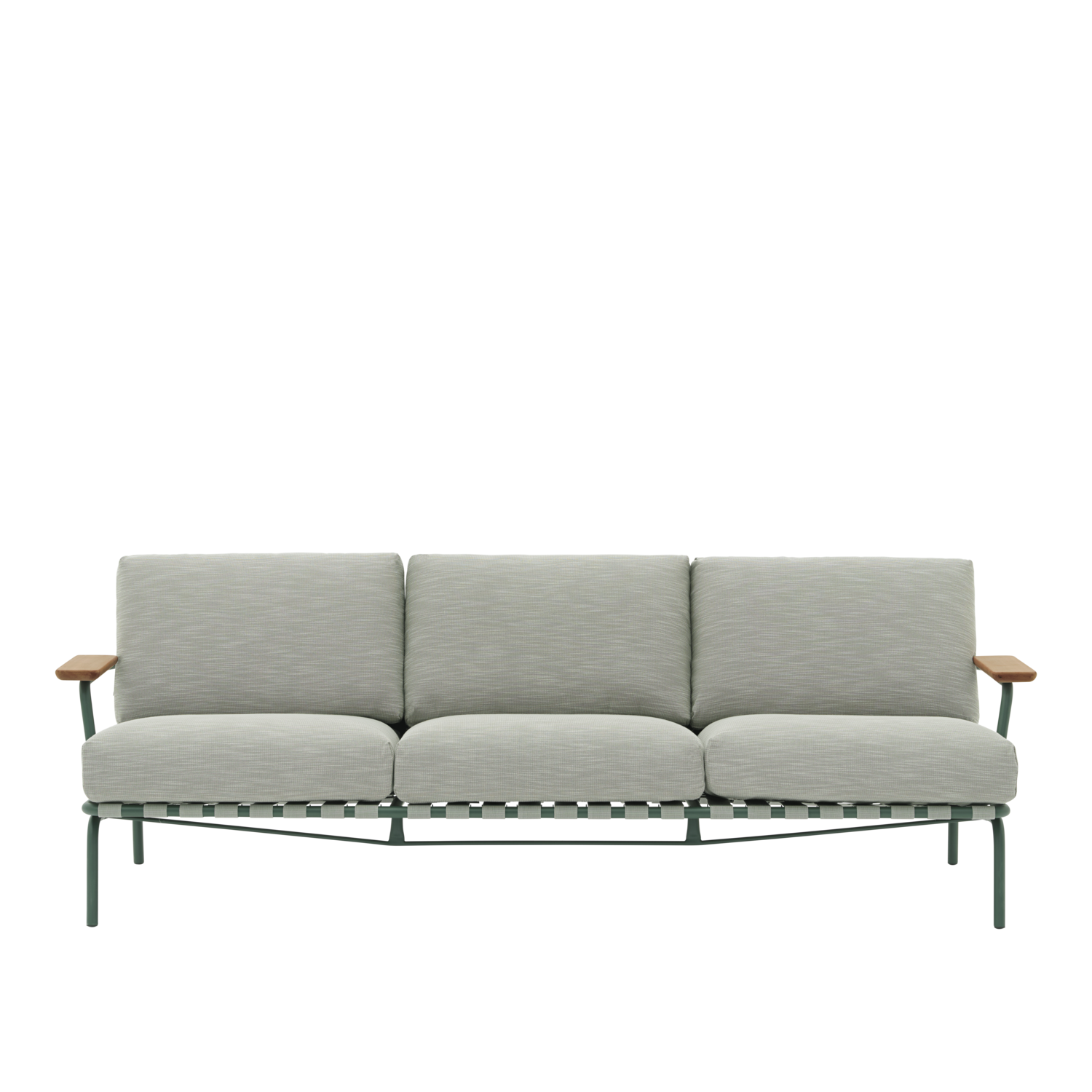 De Muuto Settle Outdoor Sofa is de perfecte toevoeging voor je buitenruimte, waar comfort en design elkaar ontmoeten. Met een luchtig stalen frame dat een open, moderne uitstraling heeft, is deze tuinbank niet alleen visueel aantrekkelijk, maar biedt ook ongeëvenaard comfort. De armleuningen zijn gemaakt van FSC™-gecertificeerd sapele mahoniehout, wat zorgt voor een warme, natuurlijke uitstraling die prachtig contrasteert met het strakke staal. Het frame is volledig poedergecoat, wat de bank bestand maakt tegen weersinvloeden en zorgt voor een lange levensduur, zelfs in de meest onvoorspelbare weersomstandigheden.