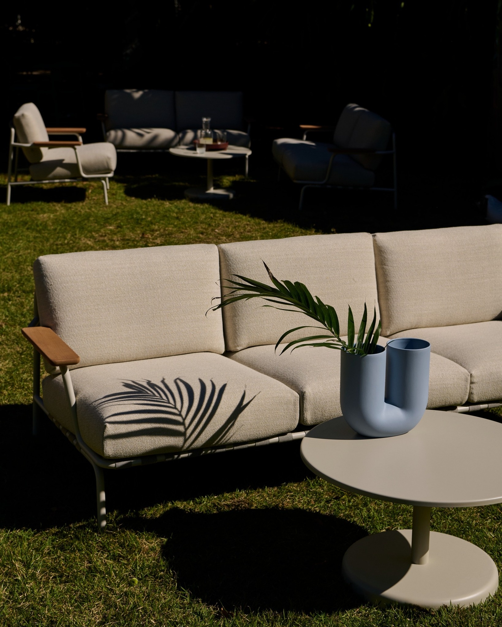 De comfortabele kussens zijn gevuld met quick-dry foam en bekleed met duurzame, waterbestendige outdoor stoffen, waardoor ze snel drogen na een regenbui en bestand zijn tegen intensief buitengebruik. Gebruik de sofa met een outdoor cover voor extra bescherming en langdurige duurzaamheid.