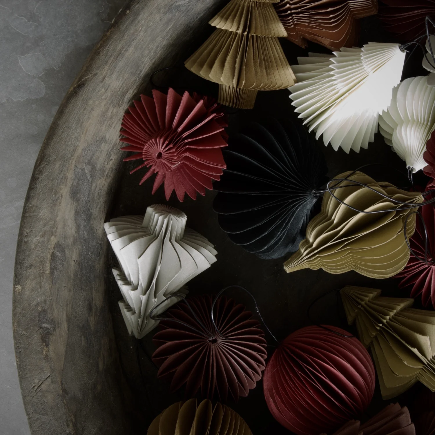 Het Nordstjerne Gevouwen Ornament Union Black voegt een elegante, duurzame touch toe aan je interieur. Dit prachtige ornament in de vorm van een ui is bevestigd aan een zwart bio-lederen koord en heeft een handige magnetische sluiting. Makkelijk uit te vouwen en in te klappen, ideaal voor elk seizoen of als decoratie tijdens de feestdagen. Het ornament wordt duurzaam geproduceerd, met gebruik van upcycled katoenen stofafval uit de textielindustrie. Er wordt geen plastic gebruikt in het productieproces, wat bijdraagt aan een milieuvriendelijke keuze.