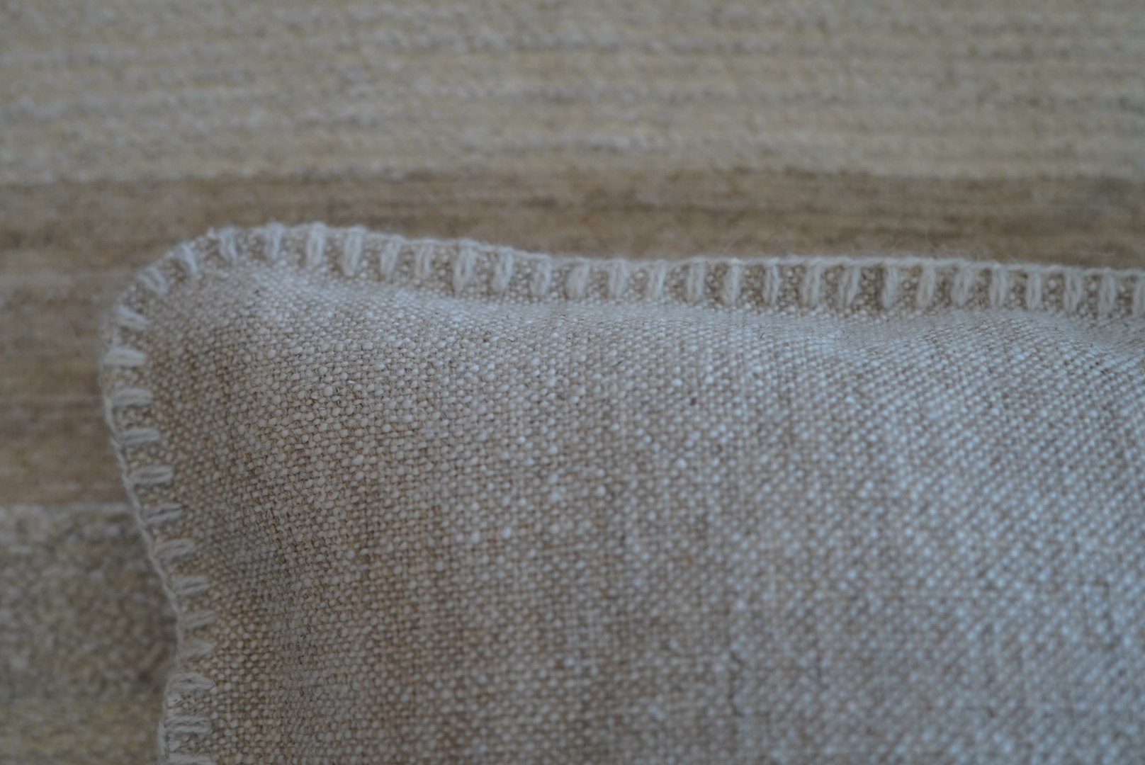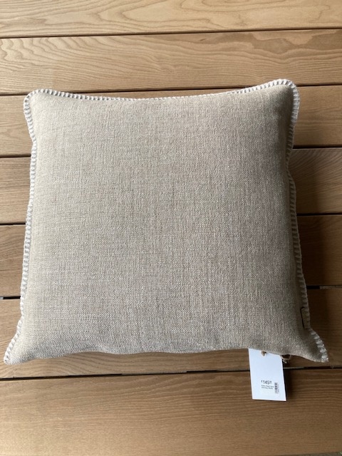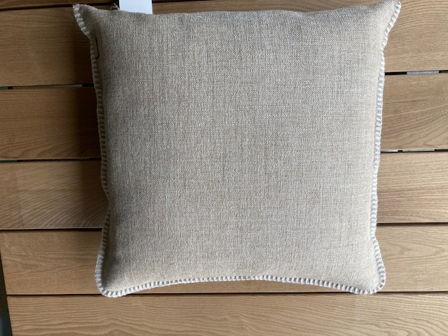 Omar Antwerp Anton Sand Cushion with Ivory Stitching: Tijdloze Elegantie en Comfort voor Jouw Interieur