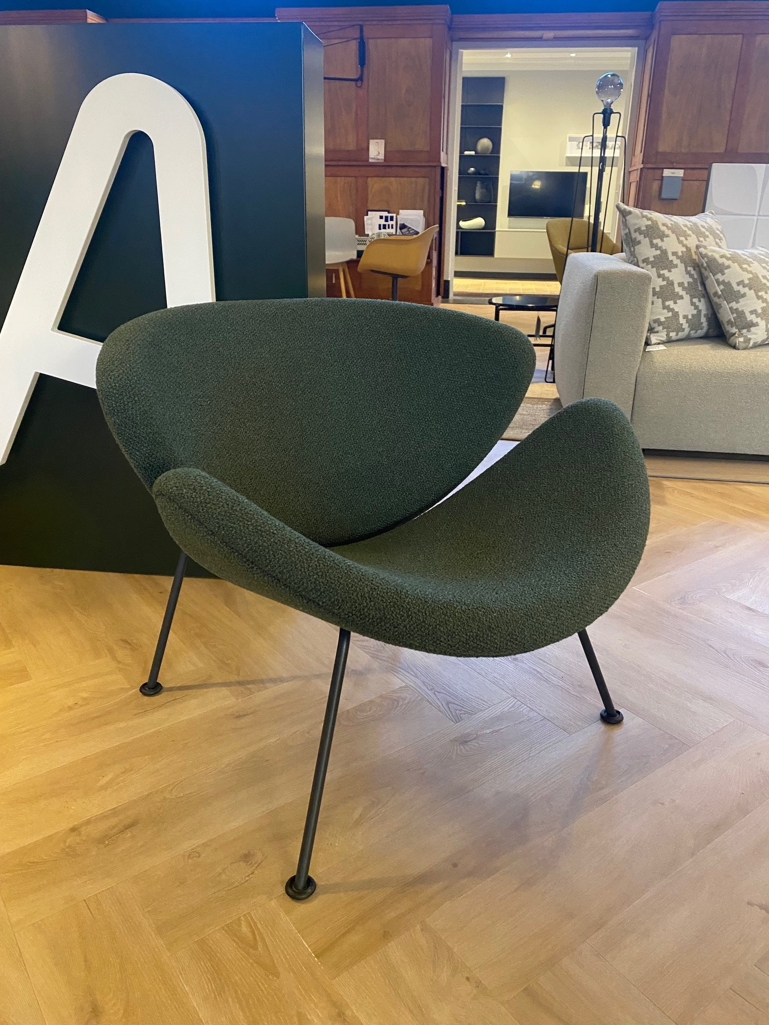 Omdat deze designklassieker in diverse uitvoeringen en stoffen beschikbaar is, is het belangrijk om de kleuren, materialen en zithoogtes in het echt te ervaren. Bij GRAUS wonen in Echt kun je de Orange Slice® zelf bekijken, voelen en testen. Onze interieuradviseurs helpen je graag bij het samenstellen van jouw ideale uitvoering, zodat jij verzekerd bent van een perfecte match met jouw interieur.