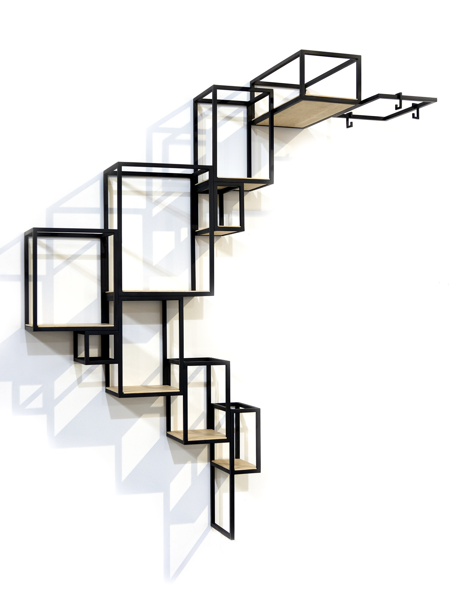 Ontstaan uit het talent van ontwerper Filip Janssen en zijn voorliefde voor zuivere lijnen, is deze plank het resultaat van een spectaculaire samenwerking tussen deze Nederlandse ontwerper en Serax. Door te spelen met geometrie, constructivisme en deconstructivisme vult deze unieke plank de ruimte met een overvloed aan audaciteit, zodat je kunt genieten van zijn ongelofelijke durf. Niet alleen kleedt dit meubelstuk de muur met zijn meerdere niveaus, maar het imponeert ook met zijn metalen frame, dat speelt met leegte en vorm met een ongeëvenaard gevoel voor lijn en volume. Als een trap in de stijl van Piranesi, als een eindeloze ladder, is het aan jou om er bezit van te nemen en je meest emblematische objecten of boeken erop te plaatsen. Je kunt het op jouw eigen manier interpreteren door het te hangen, afhankelijk van je behoeften of inspiratie, hoger of lager aan de muur.