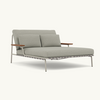 De diepe rugleuning en extra kussens bieden een ongeëvenaard zit- en ligcomfort. Het luchtige stalen frame in een elegante grijze poedercoating zorgt voor een moderne uitstraling en een duurzame constructie. De armleuningen van FSC™-gecertificeerd sapele mahoniehout voegen een warme, natuurlijke toets toe die prachtig contrasteert met het strakke staal.