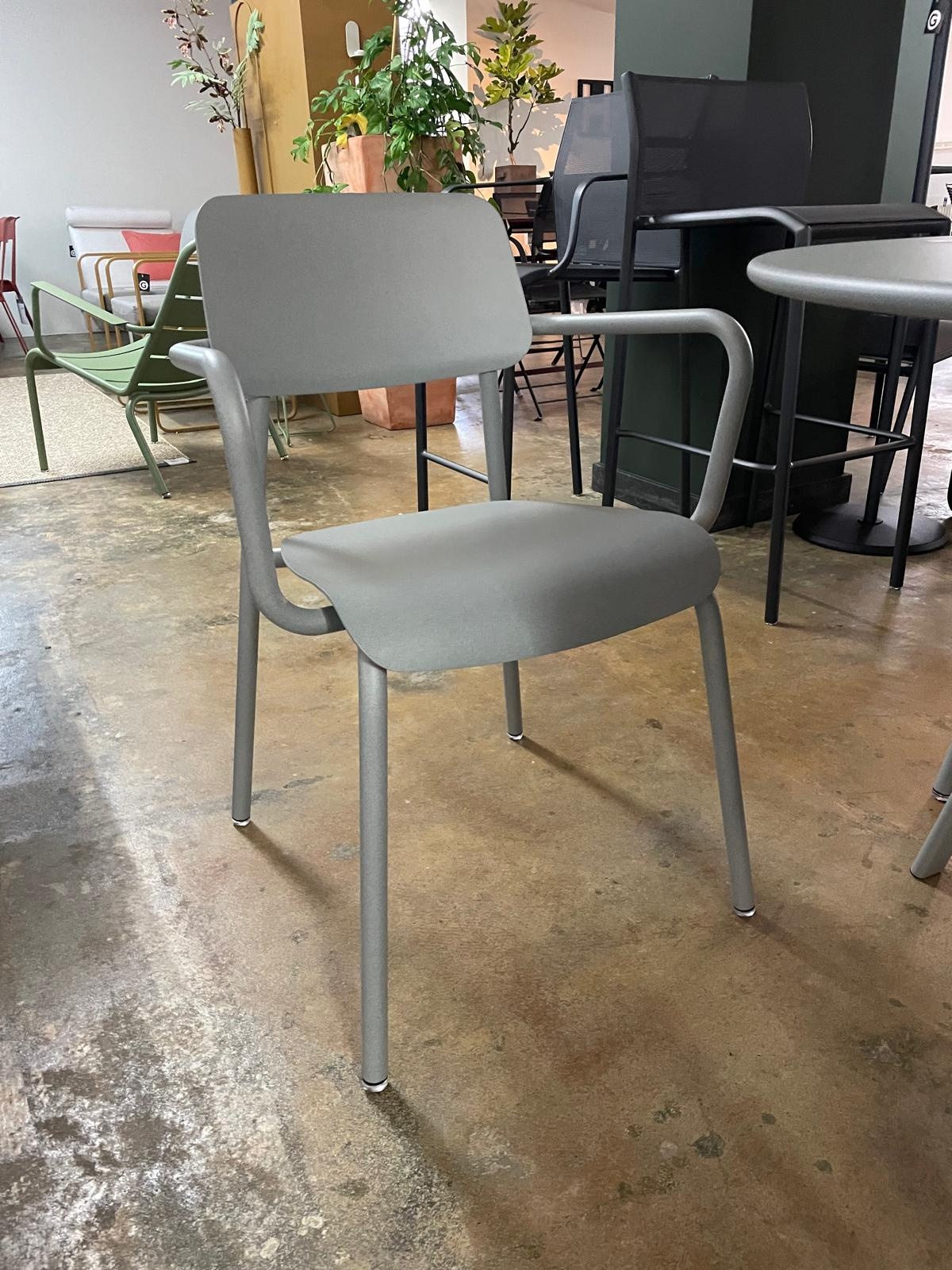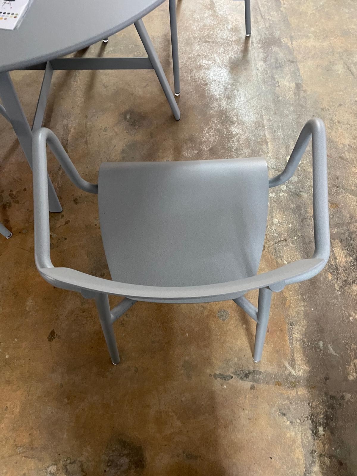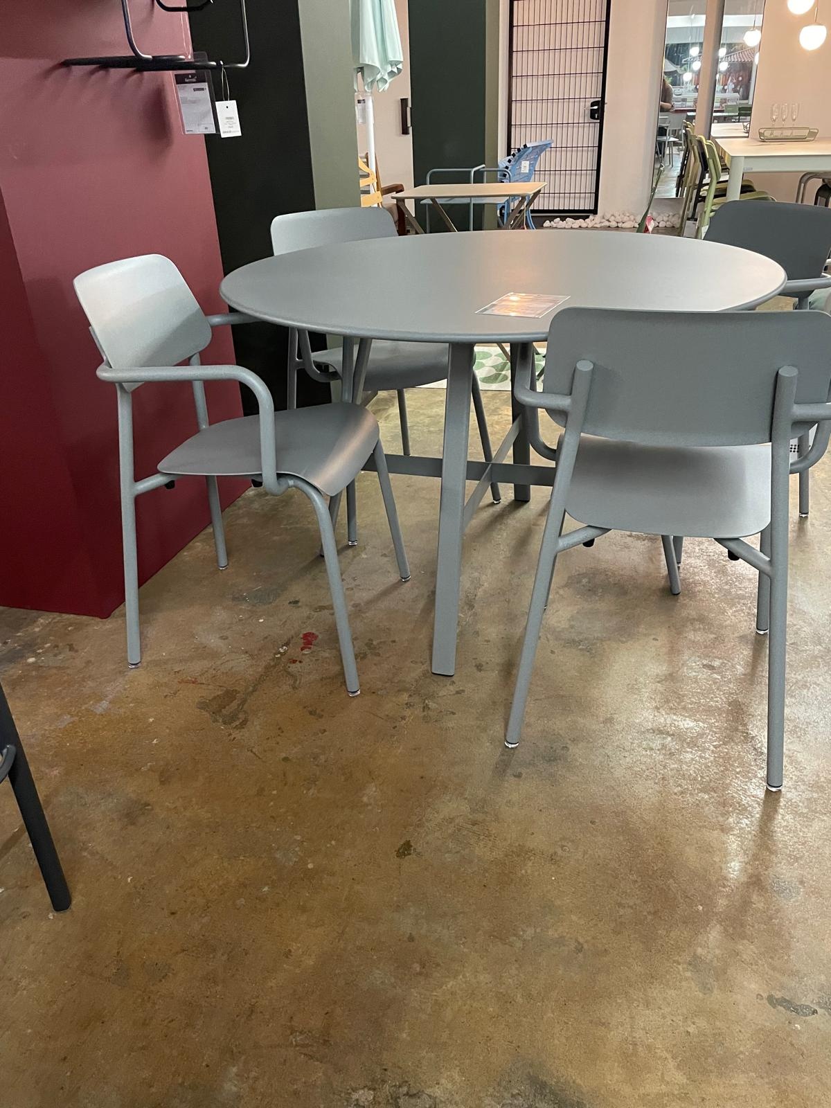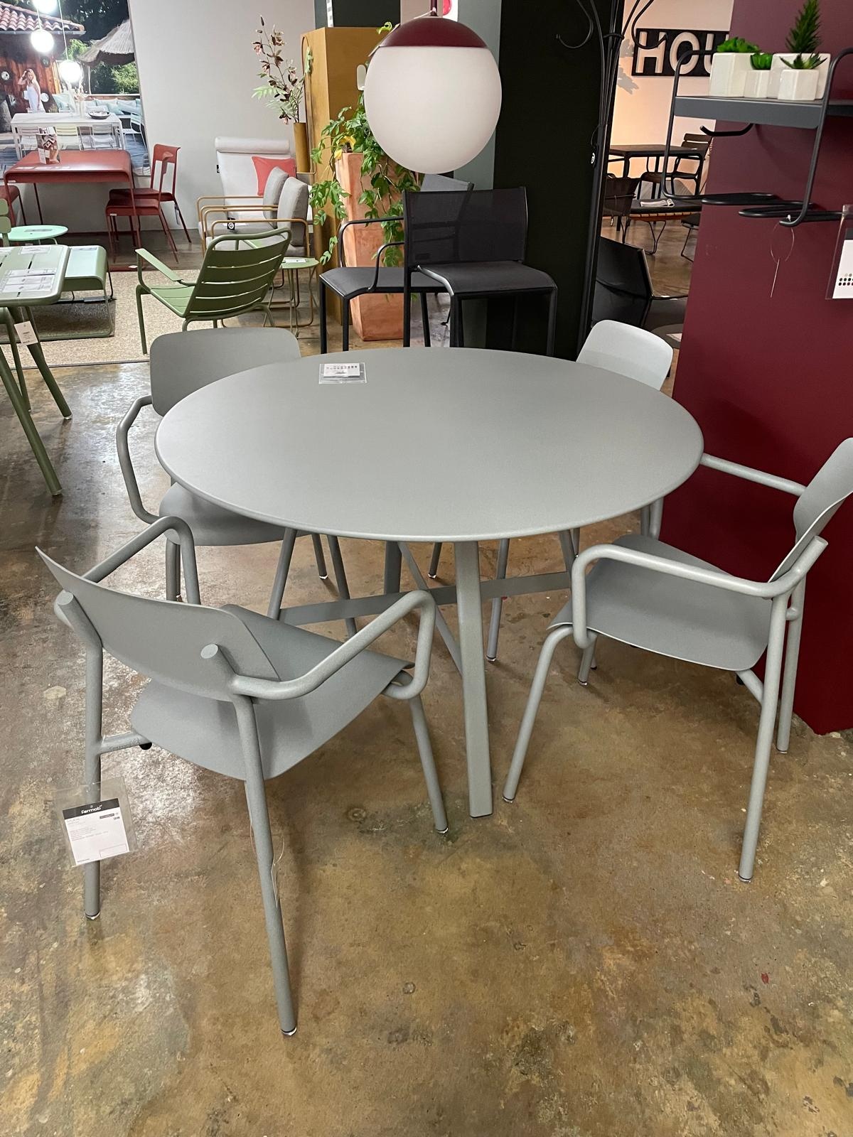 Exclusieve Fermob Tuinset bij GRAUS wonen – So’o Tafel Ø117 cm + 4x Studie Armchair in Lapilli Grey – Laatste Set Direct Uit Voorraad