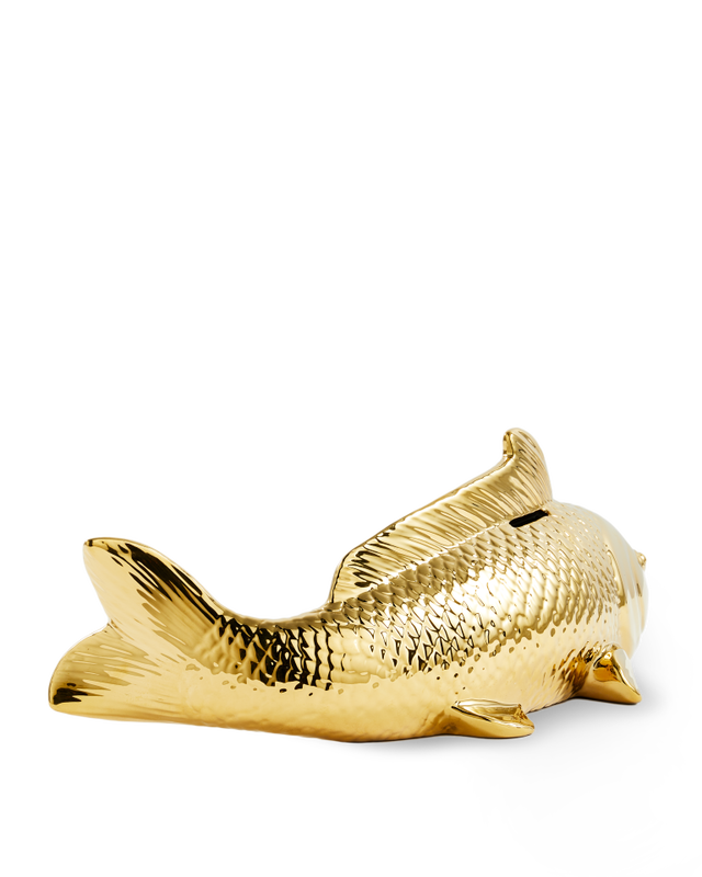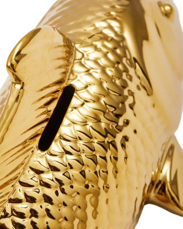 Met de Pols Potten Vis Spaarpot geef je je interieur een speelse en luxe twist. Deze grote spaarvis is allesbehalve doorsnee en direct een blikvanger in je woning. Verkrijgbaar in glanzend goud of metallic multicolour, straalt hij roem, voorspoed en familiegeluk uit en past hij perfect bij de iconische Pols Potten Fish Plate. Sparen wordt zo niet alleen praktisch, maar ook een stijlvol statement.