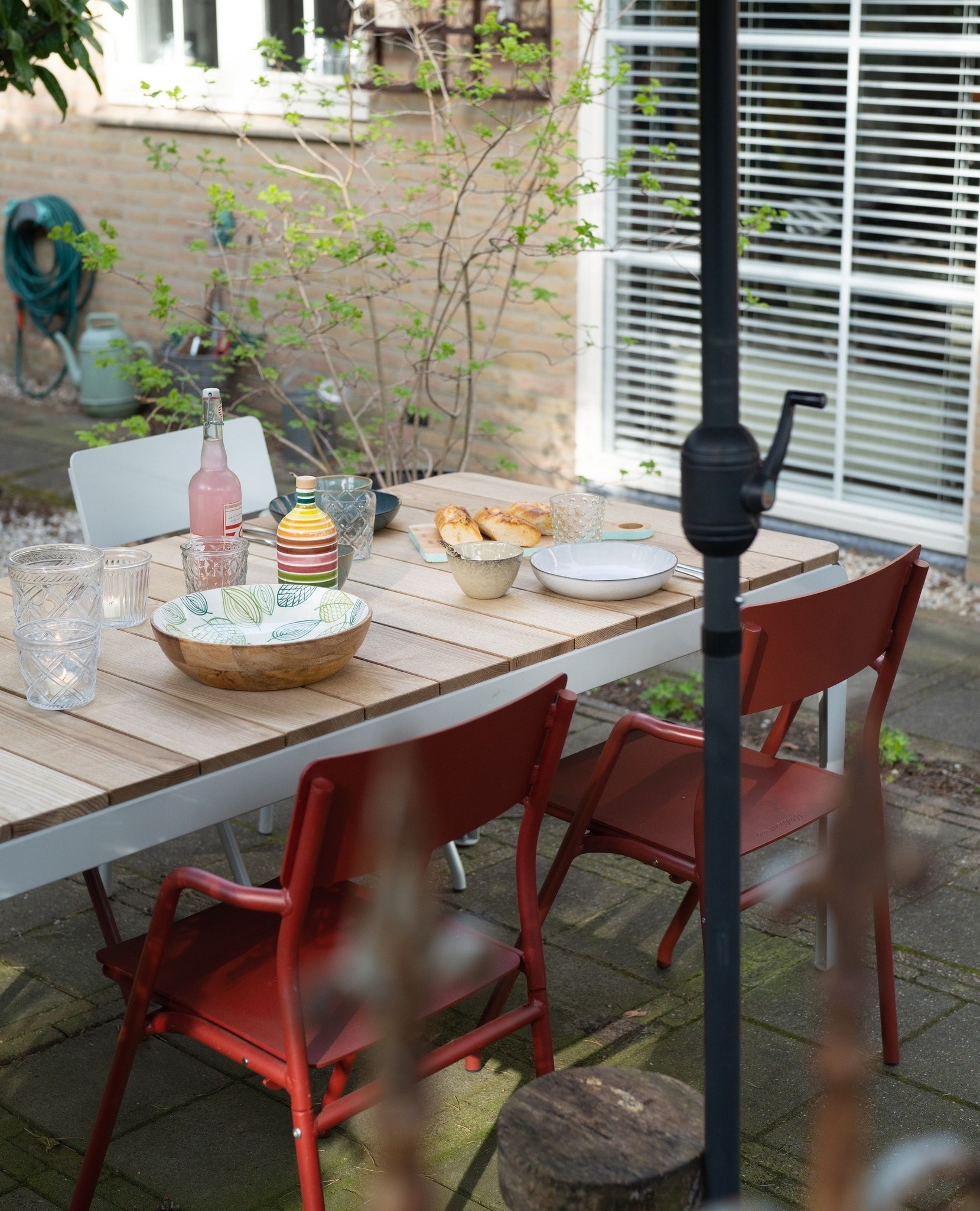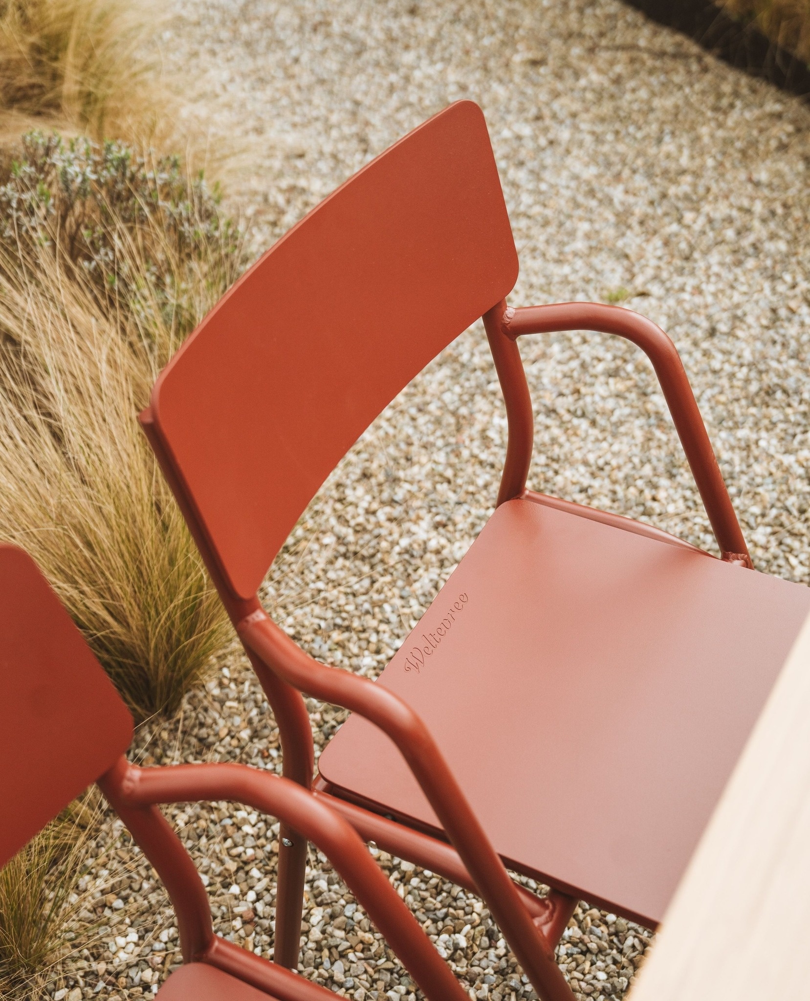De Weltevree Flip-up Chair is beschikbaar in drie stijlvolle kleuren: Oxide Red, Agate Gray en Reseda Green. Het gepoedercoat aluminium geeft de stoel een strakke, moderne uitstraling die perfect past in iedere tuin of op je terras. Of je nu een buitendiner organiseert of gewoon wilt genieten van een moment in de buitenlucht, de Flip-up Chair biedt de perfecte combinatie van design, comfort en functionaliteit.