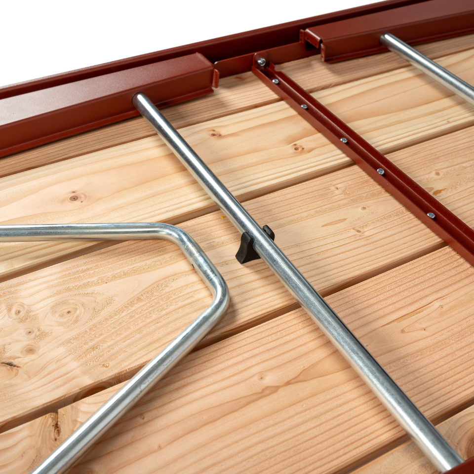 Dankzij het slimme opvouwsysteem zet je de set in een handomdraai op of vouw je hem weer op voor eenvoudige opslag. De rubberen doppen onder de poten beschermen de vloer en maken het transporteren zonder schade mogelijk.